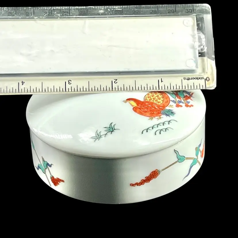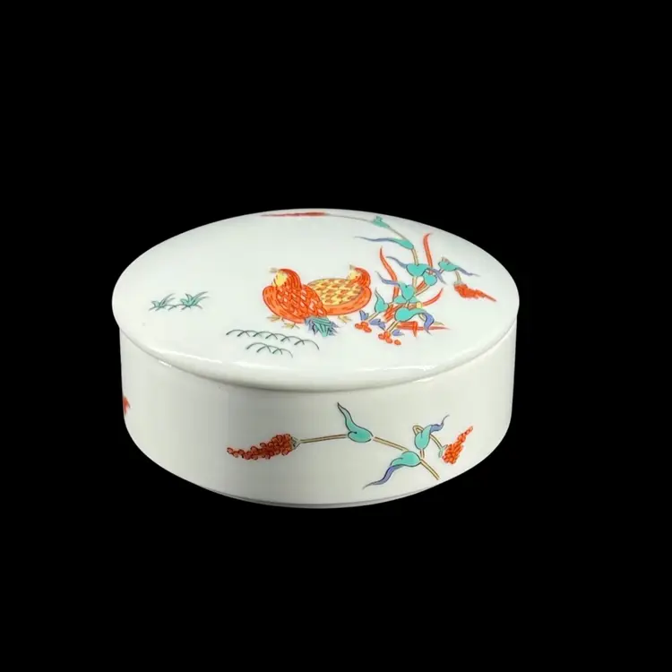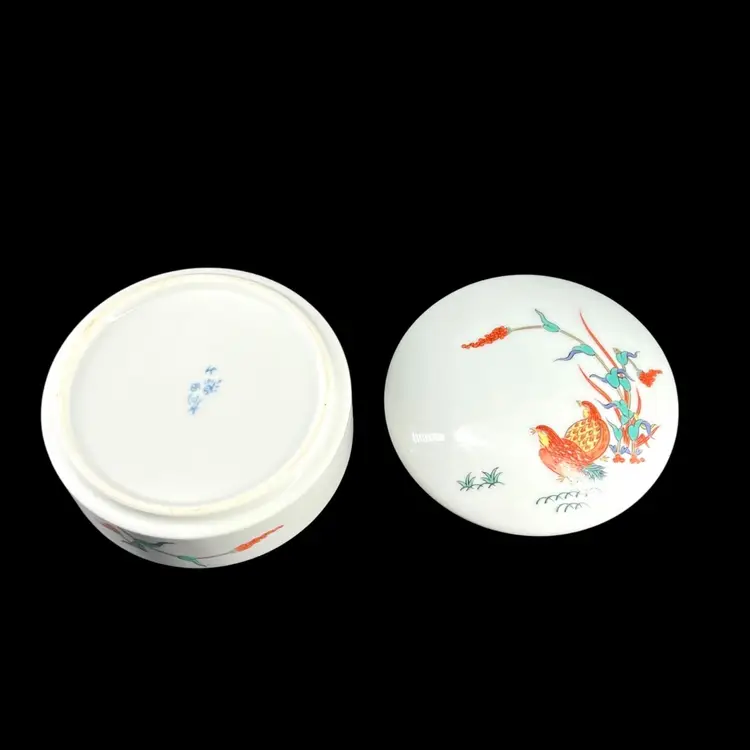The Artwork depicts millet stalks and quails, which are traditional Japanese symbols of abundance and peace. Created in the distinctive asymmetrical design of the Kakiemon kiln, known for its fine white porcelain and delicate overglaze enamels The specific blue marking on the bottom identifies the kiln or manufacturer, a common practice for Arita porcelain from the Saga Prefecture. 👉1 1/2”H x 4“W 👉Shipping Overages Over $1 Is Refunded 👉Progressive Shipping is Not Used on Items That Are Heavy Or Fragile 👉No Chips or Cracks 👉Review Photos For Best Condition Description 👉Sold As Shown
