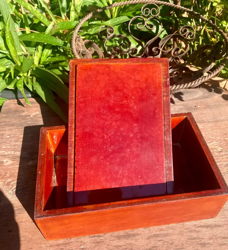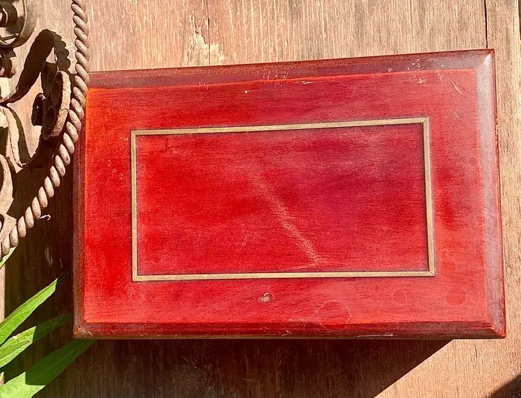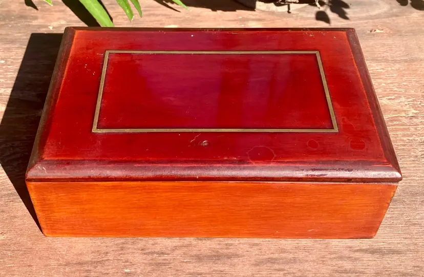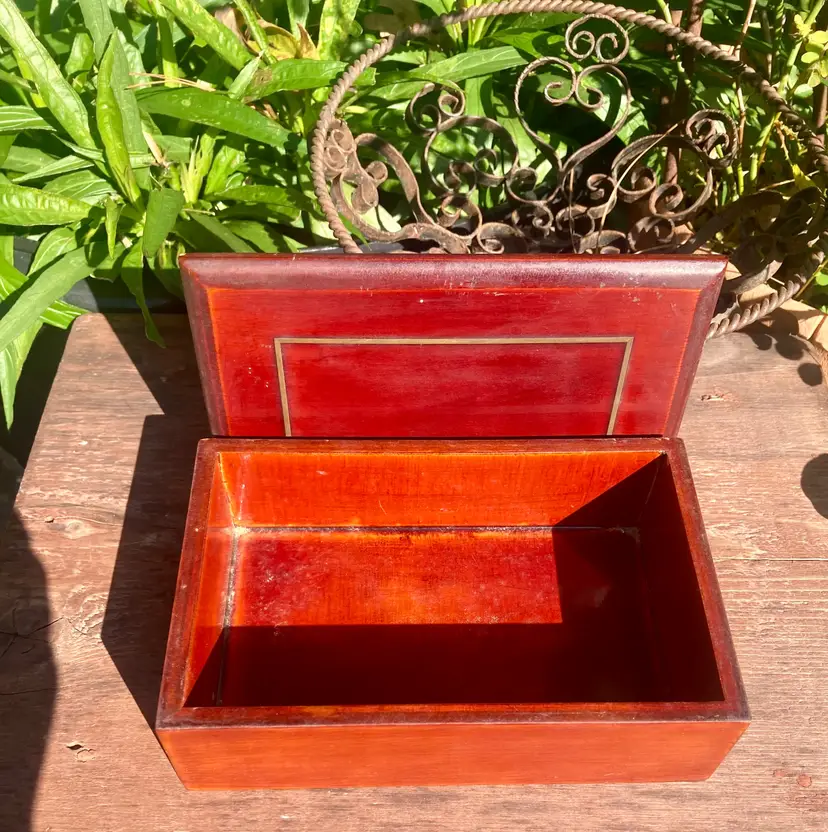 Trinket Box Wood w Lid Brass Pinstripe Inlay Vintage
