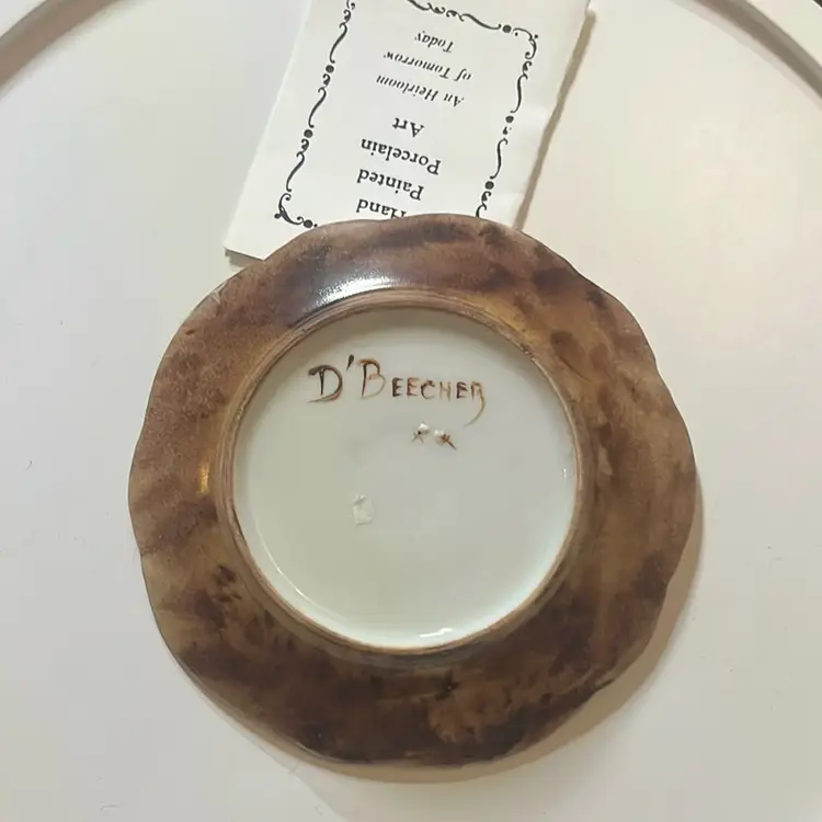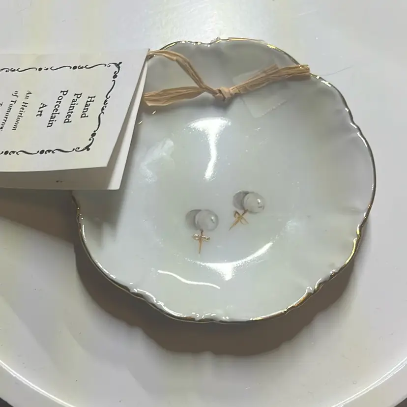 Hand painted porcelain trinket dish with had painted pearl earrings. So elegant for any vanity. 4.5 inches in diameter