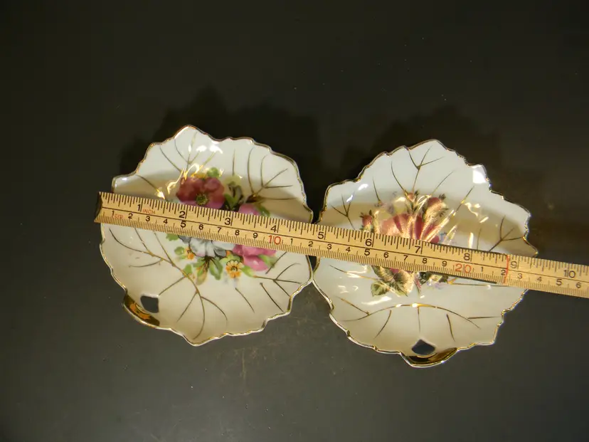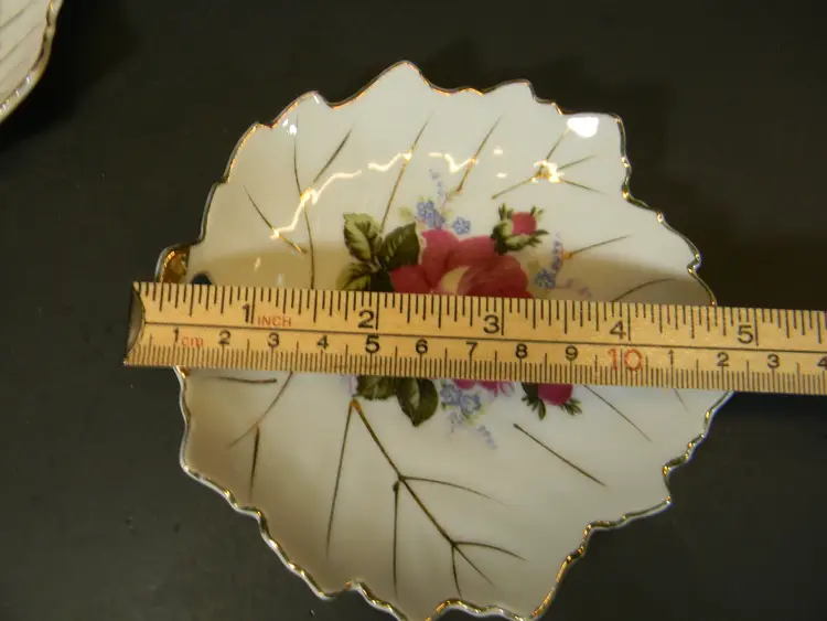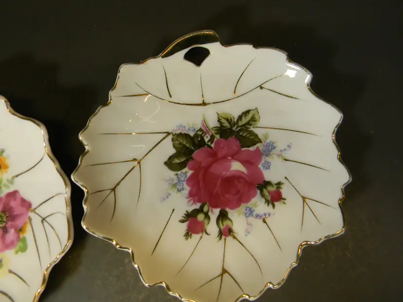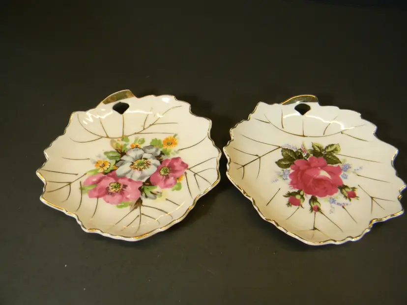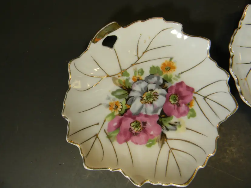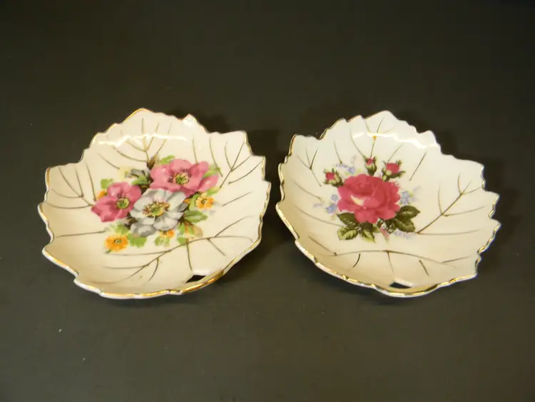 Trinket Dish Floral Leaf Gold Set of 2 Made in Japan Used condition Please see all photos before purchasing no chips or cracks