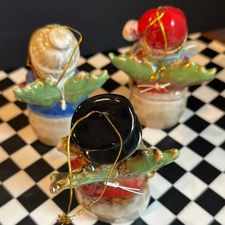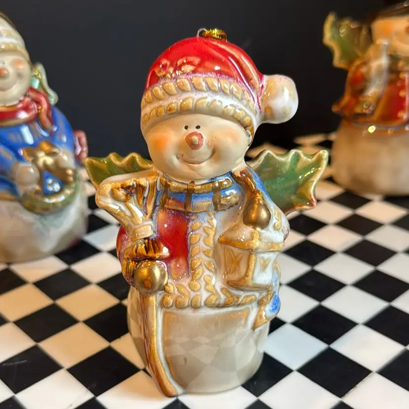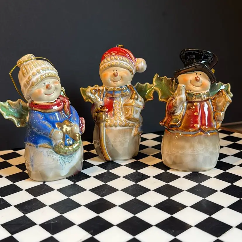 Cute trio of snowman angel bells! All three are in awesome condition. They measure about 4 1/2 inches tall.