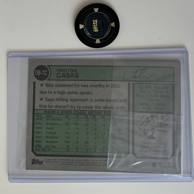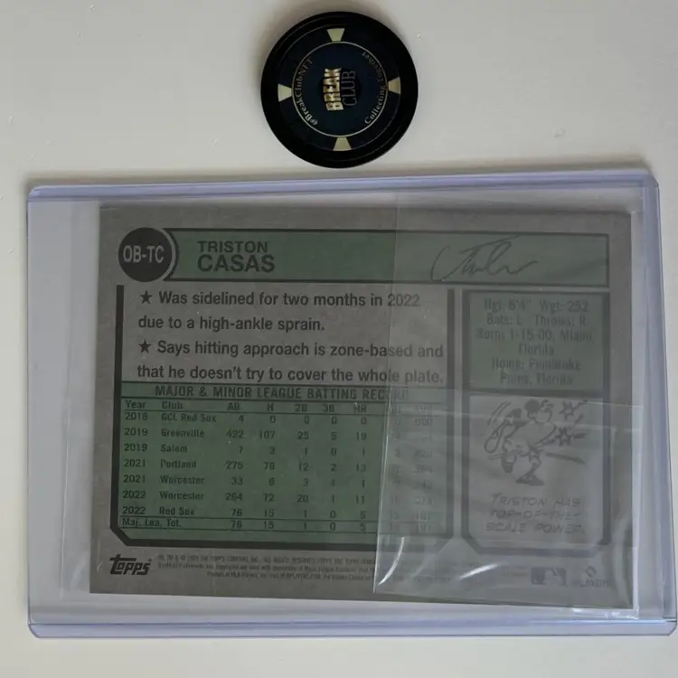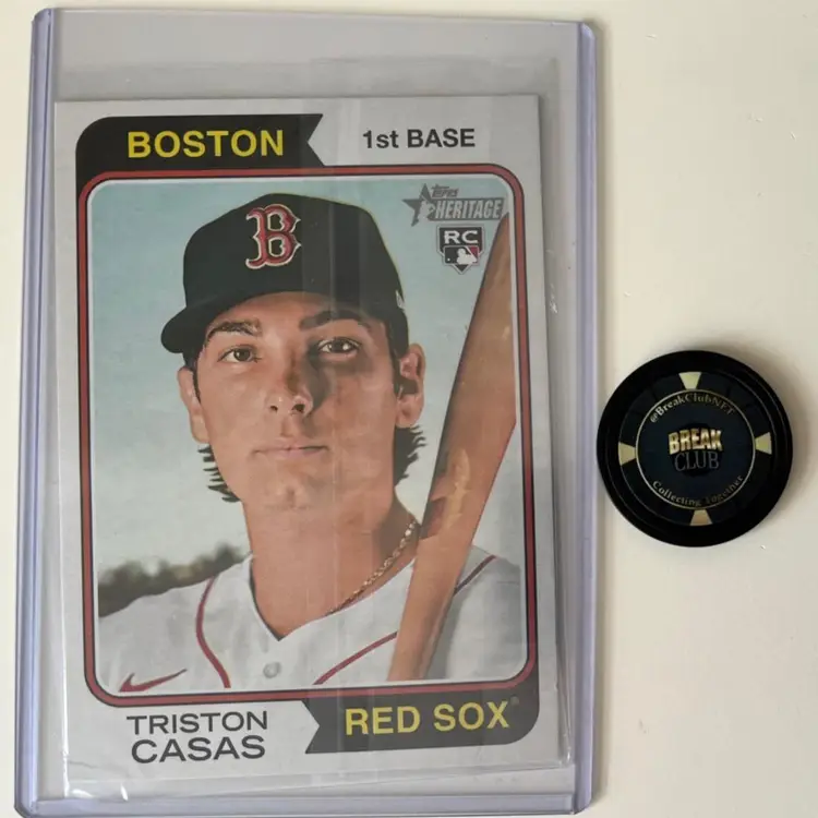 2023 Topps Heritage #OB-TC. This is an oversized box topper rookie card featuring Triston Casas.