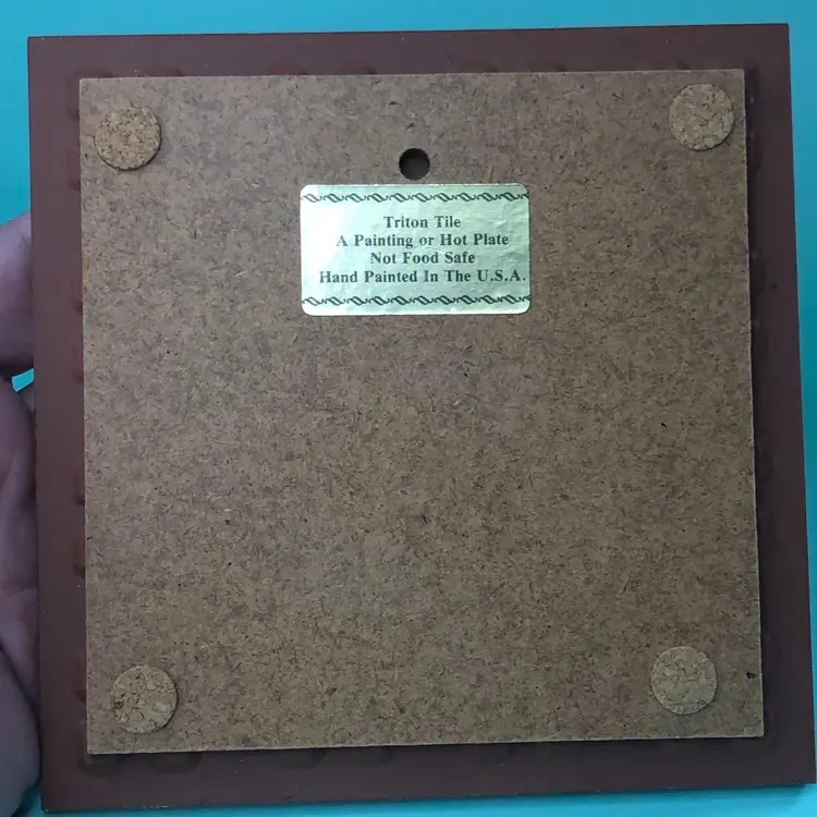 Triton Tile Trivet Black Rooster Blood Red Comb Wall Hanging Hand Painted USA . Hand Painted. No chips, no cracks. A few tiny tiny flea bites on edge. 6" x 6".