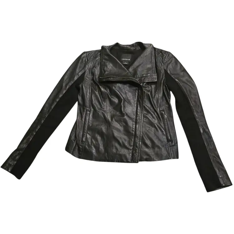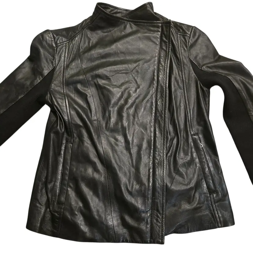 Trouvé Black Asymmetrical Zip Women's Moto Authentic Leather Jacket Size S Biker