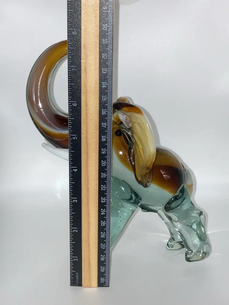 Gorgeous Trunk Up Glass Elephant! 7 3/4” Tall 5” Trunk To Toe. No Damage. NEW to District? Enter code Michel42 into your wallet prior to your first purchase and save $5 off of $10 or more! Happy Hunting! Thank you for checking out my items! Give me a Follow and I'll Follow you back! I do combine shipping and refund for any overages!