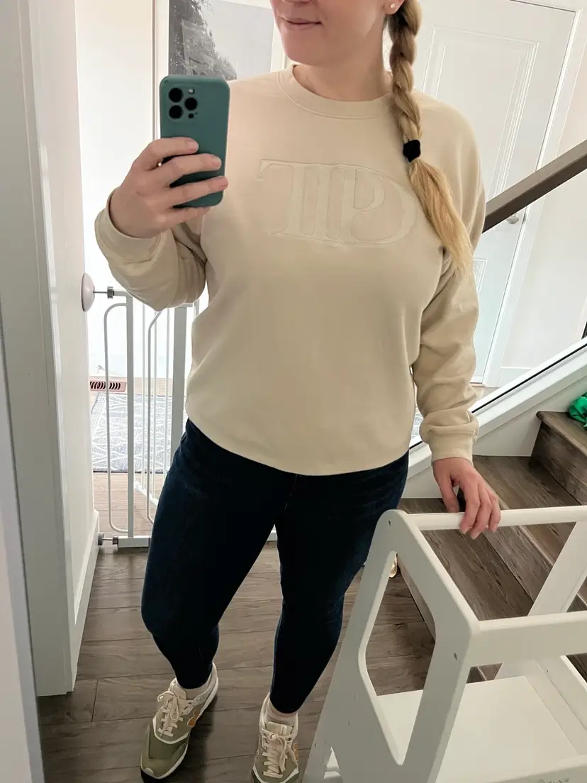 This exclusive Crewneck sweatshirt is embroidered with the TTPD design, approximately 9x5 inches and comes in the colour sand with a monochrome shiny thread. The sweater is super cozy and unisex, true to size. Embroidered in Maple Ridge, BC.