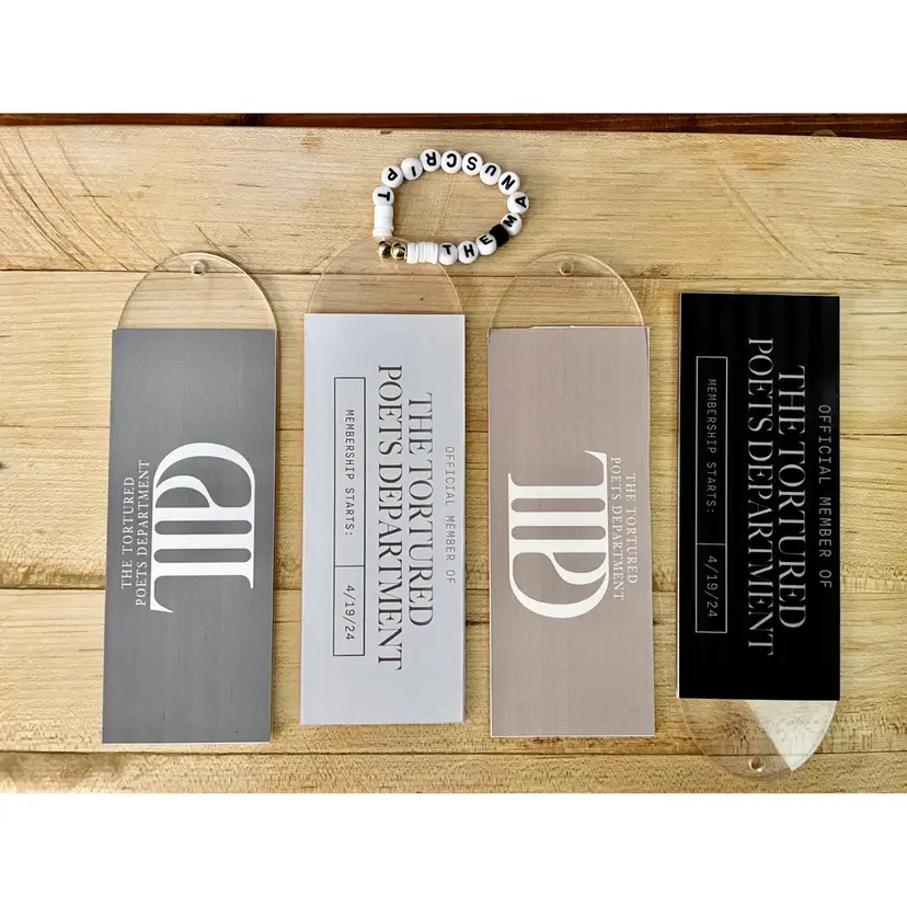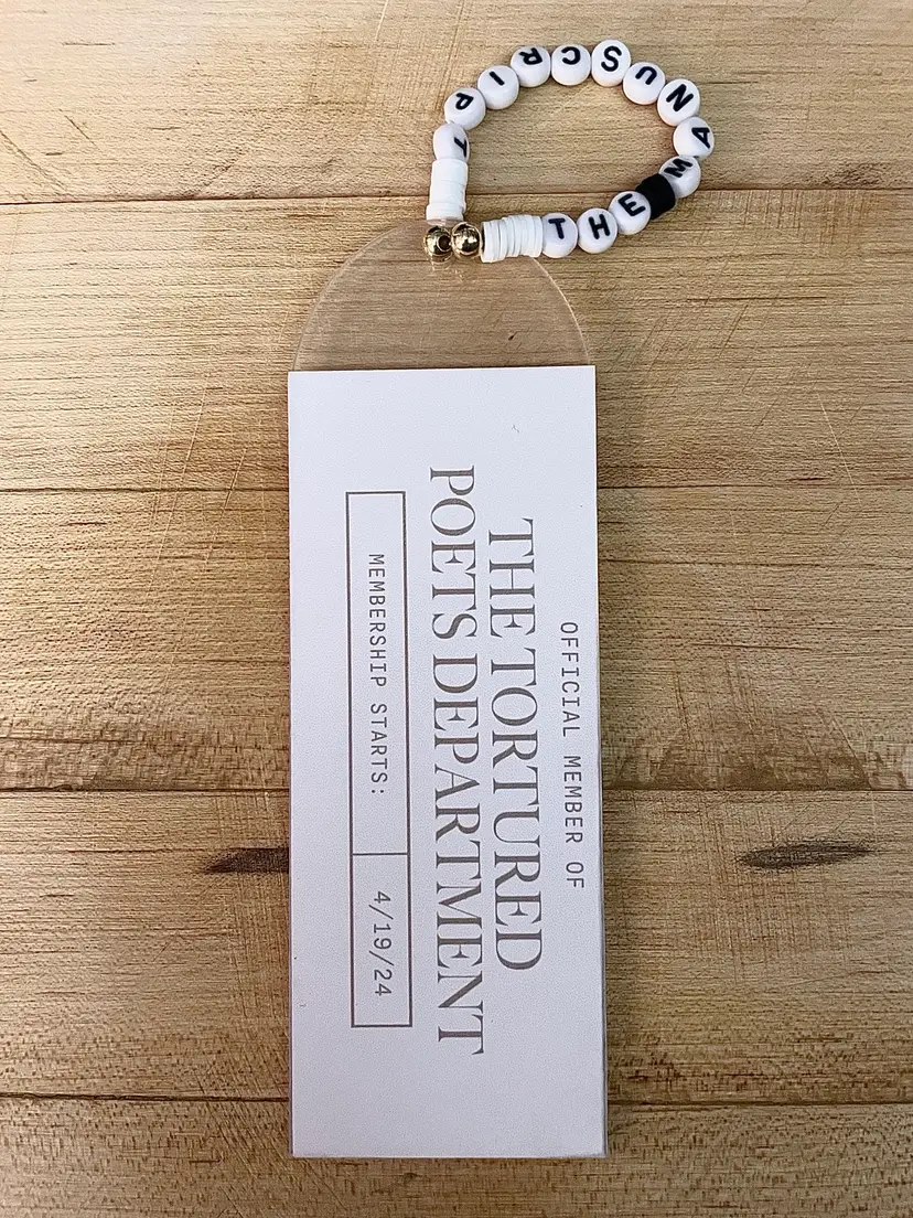 Show off your membership of the Tortured Poets Department with these acrylic bookmarks! Each variant color offered + a friendship bracelet on the top with the corresponding bonus track 🤩🎶