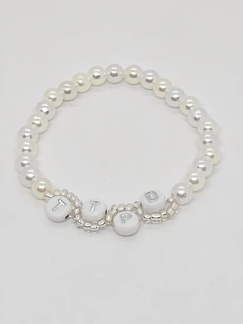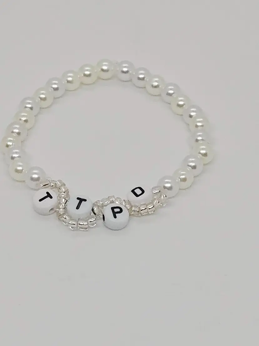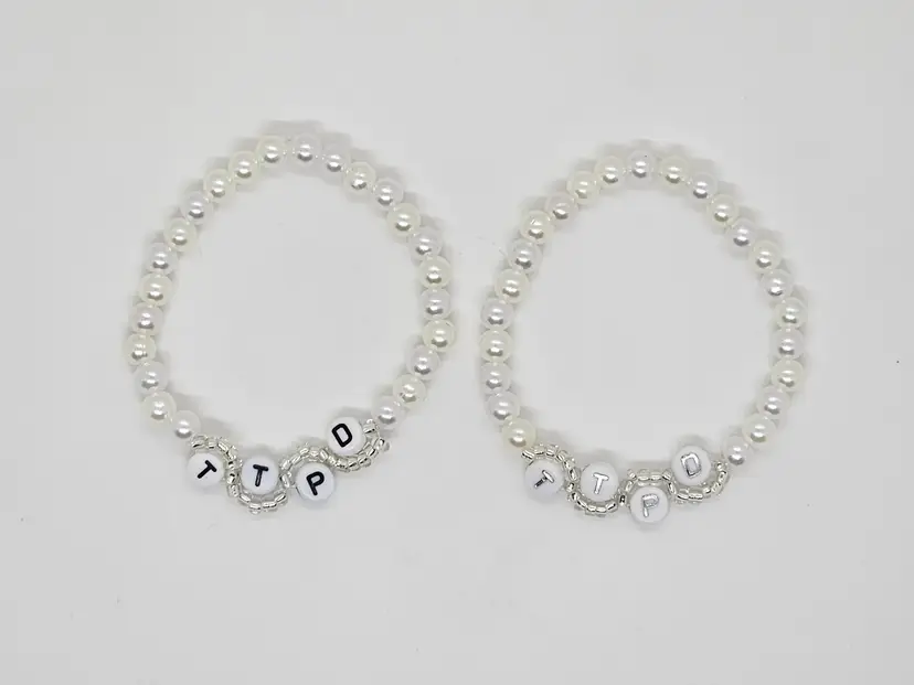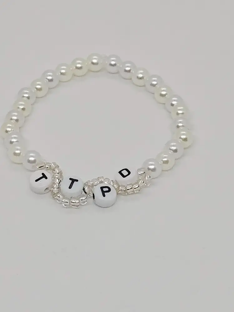 Get ready for The Tortured Poets Department on April 19 with our TTPD wavy bracelet. Available in your choice of black or silver letters, both options include a mix of white and pearl colored beads that make up the bulk of the bracelet.