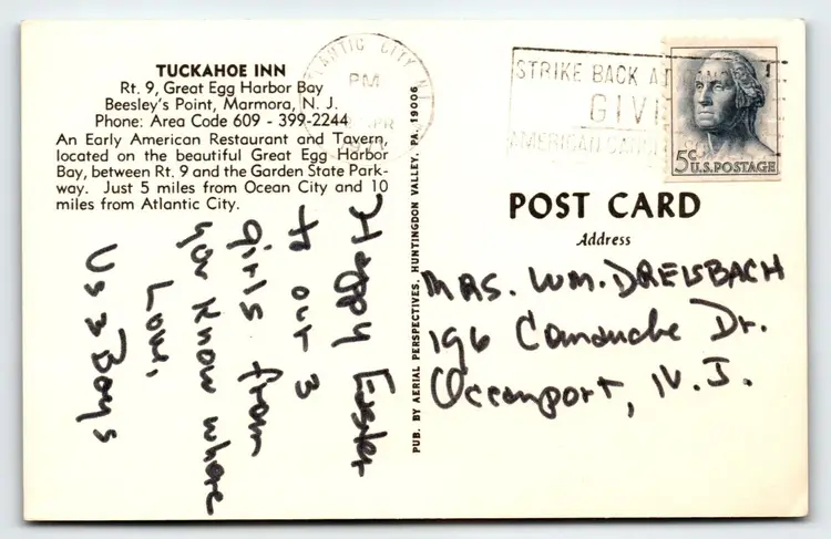 Number of Items in Set: 1 Unit of Sale: Single Unit Artist: Unknown Occasion: Travel Size: Standard (5.5 x 3.5 in) Signed: No Custom Bundle: No Material: Paper Year Manufactured: 1967 City: Marmora Original/Licensed Reprint: Original Brand/Publisher: Aerial Subject: Inn Continent: North America Type: Printed (Lithograph) Era: Photochrome (1939-Now) Region: New Jersey Country: USA Theme: Aerial View, Cities & Towns, Community Life, Hotel & Restaurant, Transportation, Travel, Roadways, Highways, Freeways, Bridges Features: Chrome Time Period Manufactured: 1970-1979 Country/Region of Manufacture: United States Postage Condition: Posted