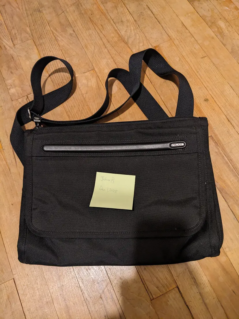 The Tumi Messenger Satchel Laptop Travel Bag is a durable, high-quality carrying case designed for everyday commuting or travel. Finished in a sleek black color, it works perfectly for both professional and casual settings. The main compartment features a secure zip-top closure, and the interior is organized with multiple sections and pockets to hold a laptop, documents, books, and other essentials. Carry it comfortably with the adjustable shoulder strap or use the sturdy top handles as an alternative.