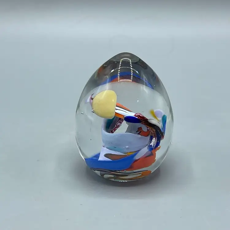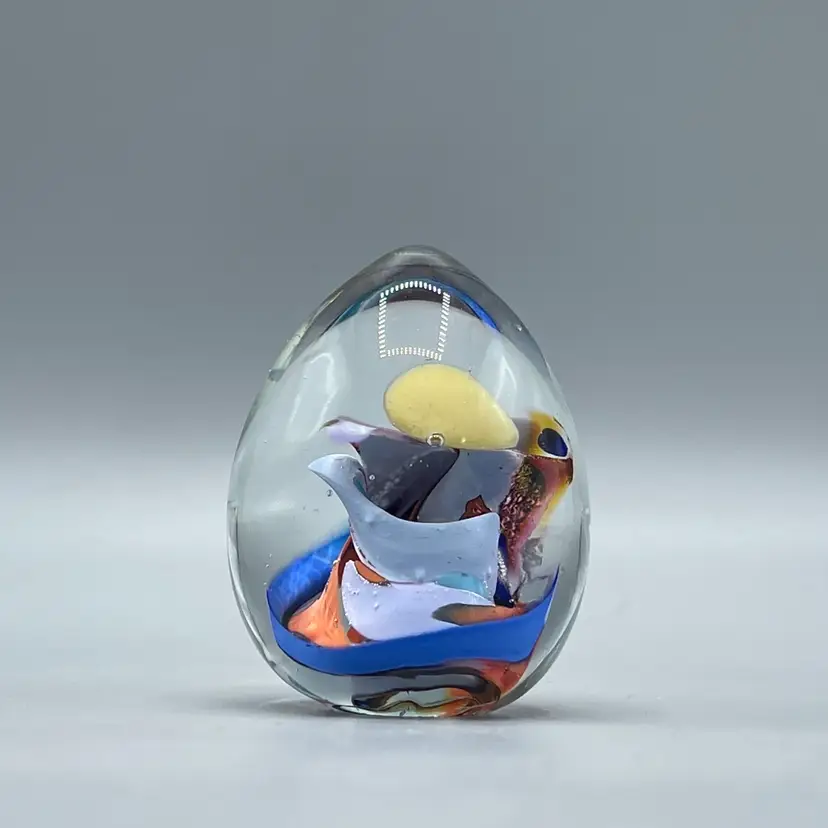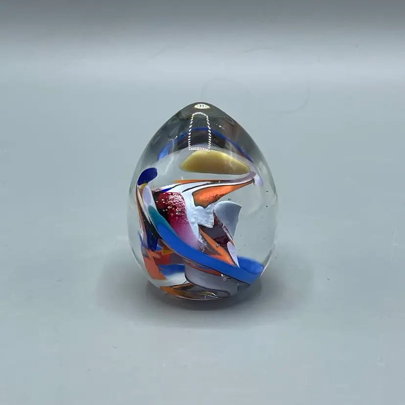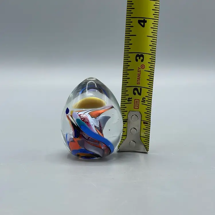 This beautiful paperweight has no chips or cracks and is signed. It is small standing at only about 2-1/4 inches tall.