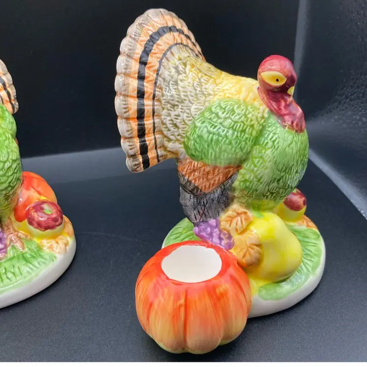 Turkey Candle Holders 4 1/4β Tall 4β Wide! Great For The Holidays! π¦π¦π¦ (1 Turkey Has 2 Areas That Could Use Touch up Paint)