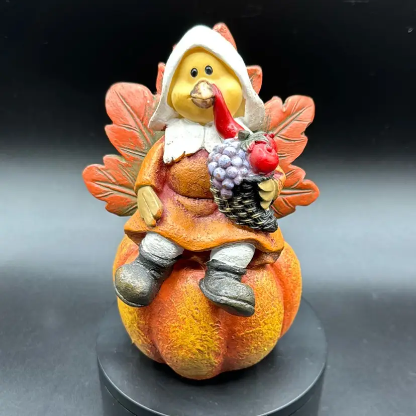 Turkey On Pumpkin Ceramic Figure 6” No Noted Flaws