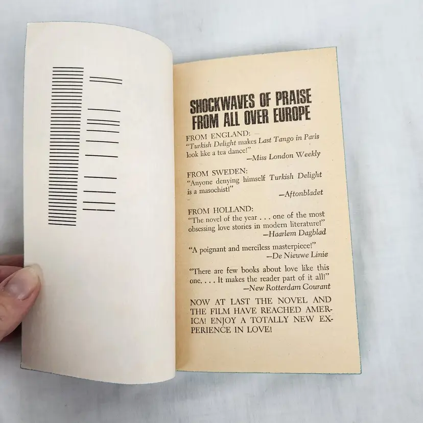 Topic: Dramas Format: Paperback Publisher: Vintage Books Publication Year: 1974 Type: Novel Language: English Book Title: Turkish Delight Author: Jan Wolkers Genre: Adult & Erotic, Drama