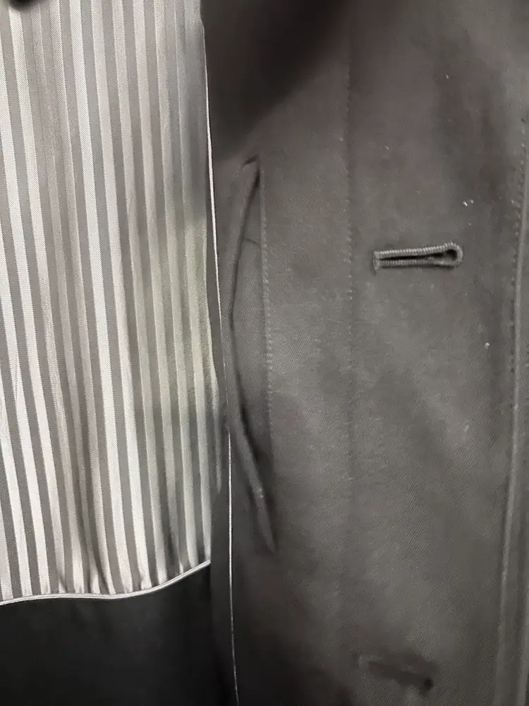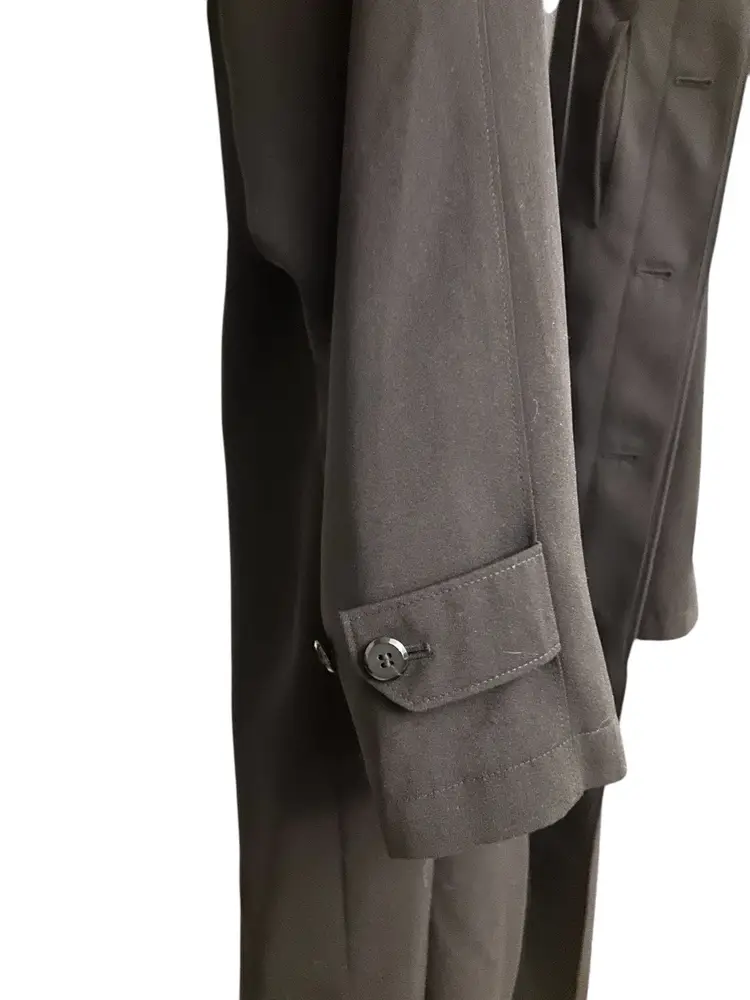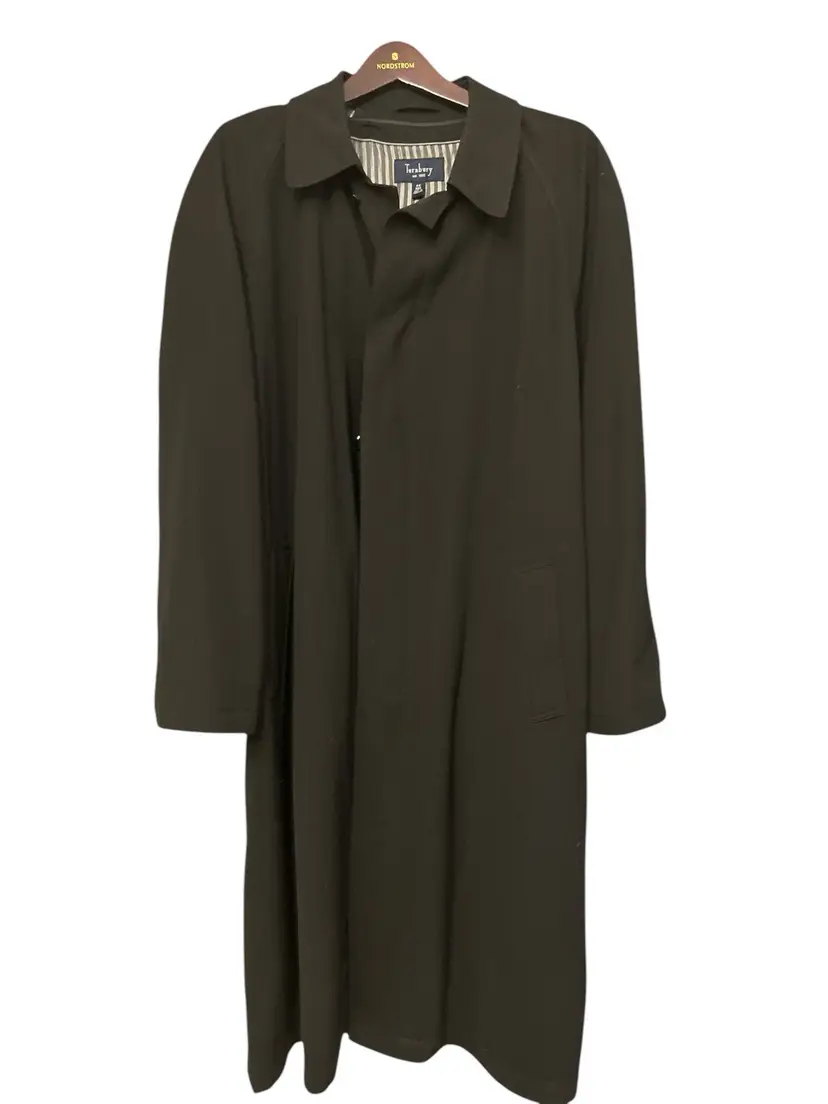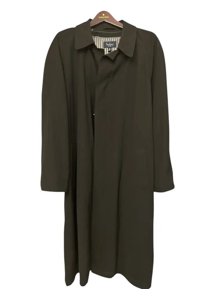 This Turnbury men's trench coat in size 44 removable wool liner is the perfect addition to your wardrobe. The coat features a solid black color, button closure, and a spread collar. The outer shell is made of polyester , and the coat is fully lined with a removable wool liner for added warmth.