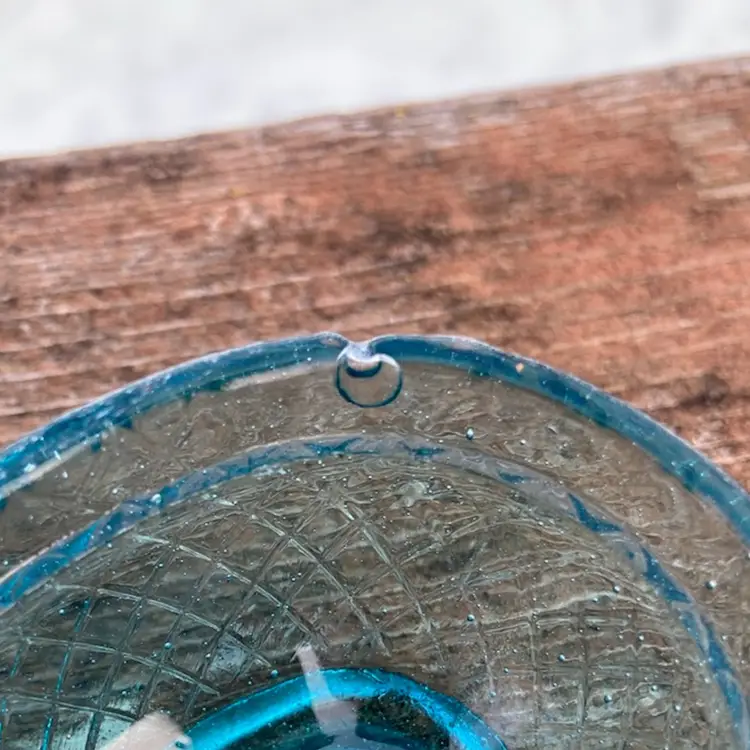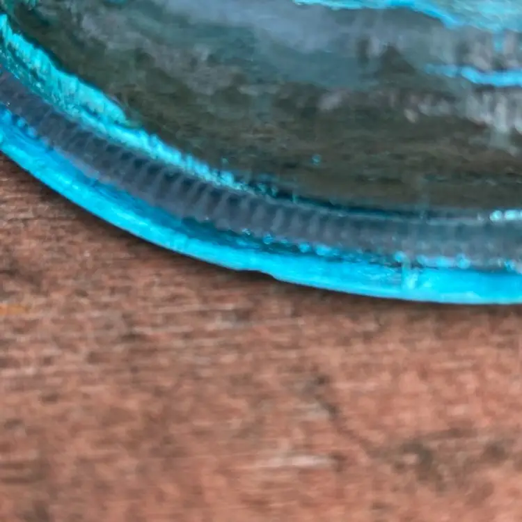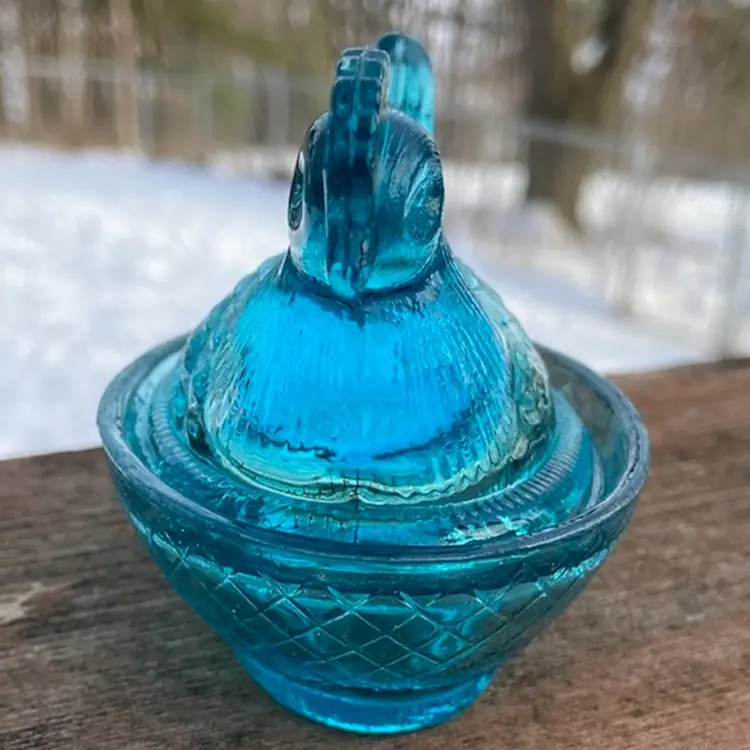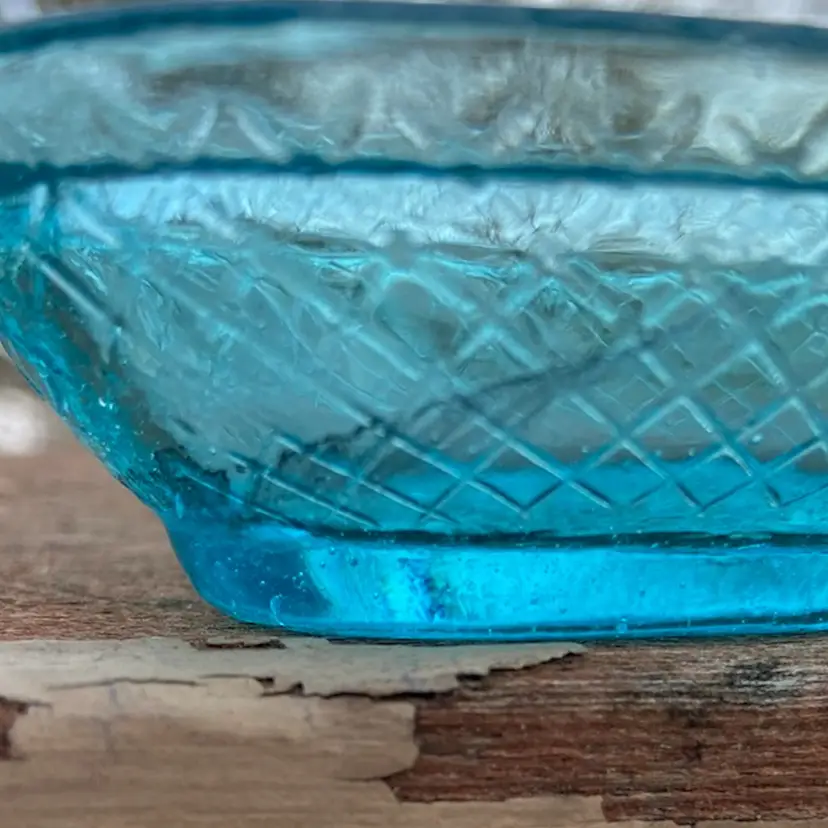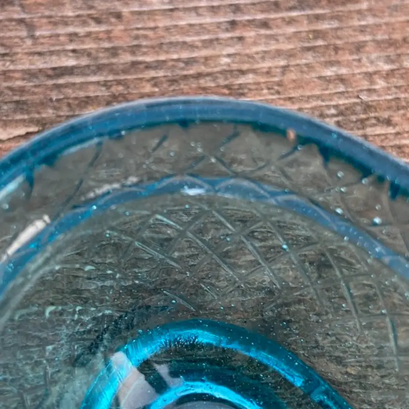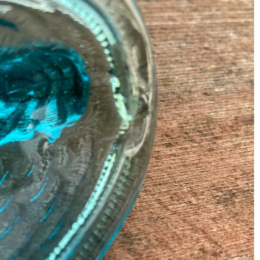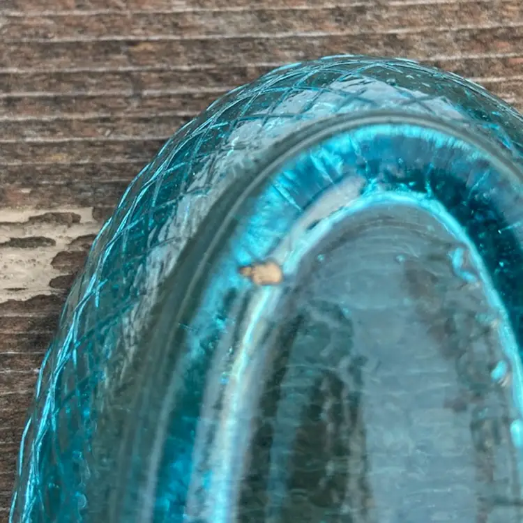 Approx: 2.75”h x 3.25”l x 2 3/8”w. Preowned condition. Slight glow under UV light. There are a couple flea bites, a burst bubble, manufacturing marks. Please see images as part of description.