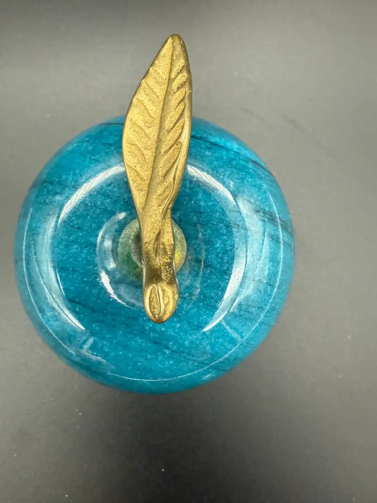 In used condition with no chips or cracks. Made of alabaster or marble with a brass stem