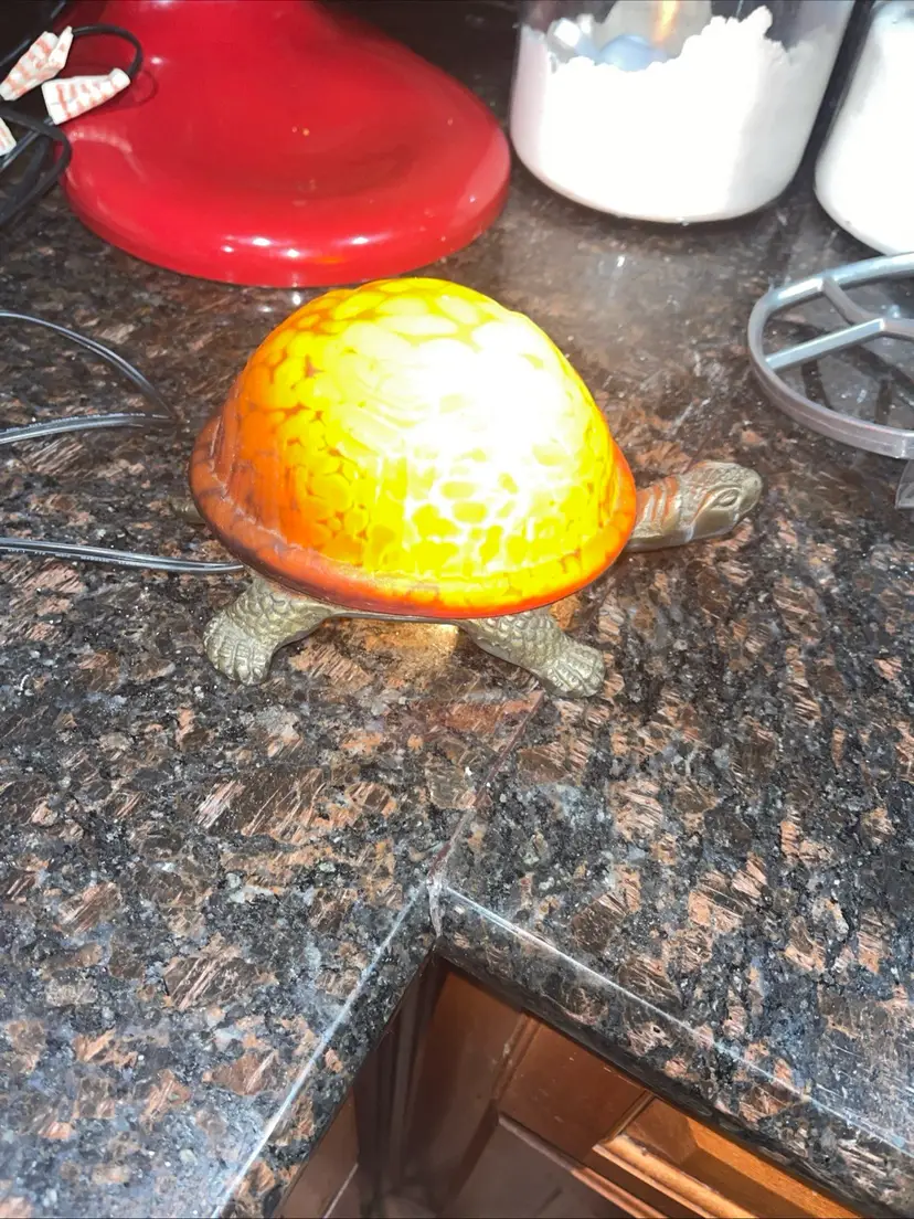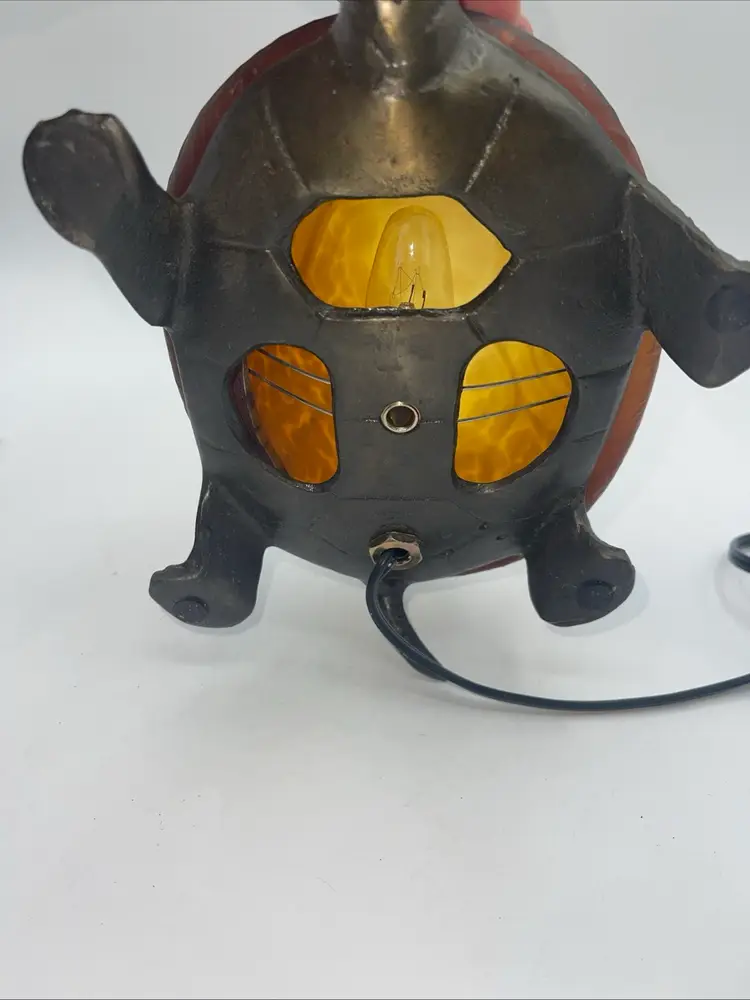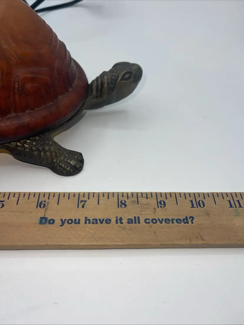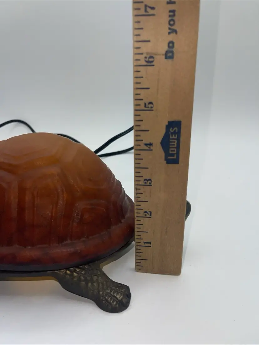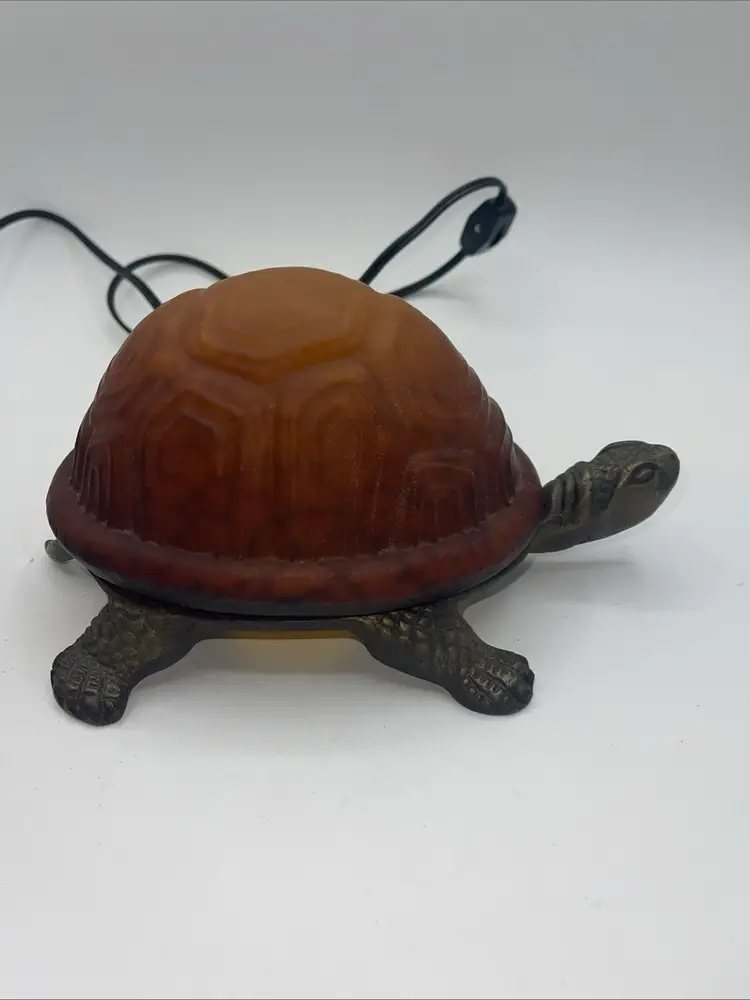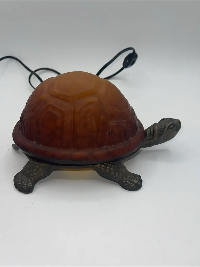 Turtle Gold Accent Lamp Amber Glass Shell Night Light Metal Base 8.5” x4.25”