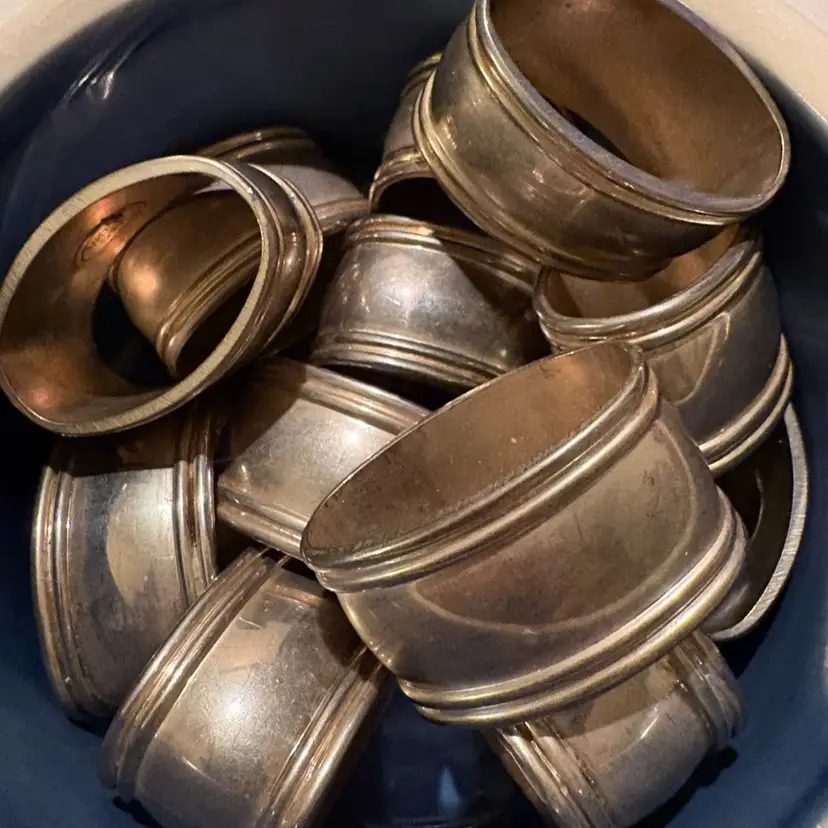 A set of twelve brass napkin holders, perfect for all occasions. These holders are made of high-quality brass and come in a stylish gold color. Originating from China, these napkin holders add a touch of elegance to any dining table or kitchen decor. With a pack of twelve, they are ideal for entertaining guests or everyday use in your home.