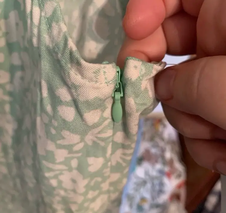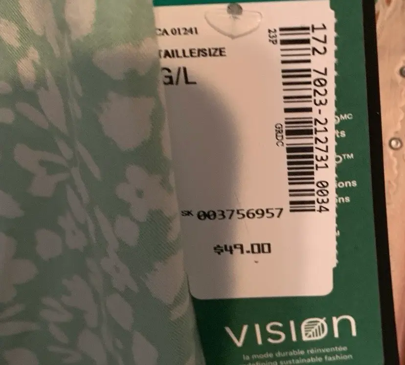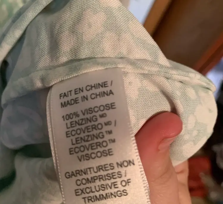 18” pit to pit. Side zipper. 100% viscose. Retails for $49 CDN.