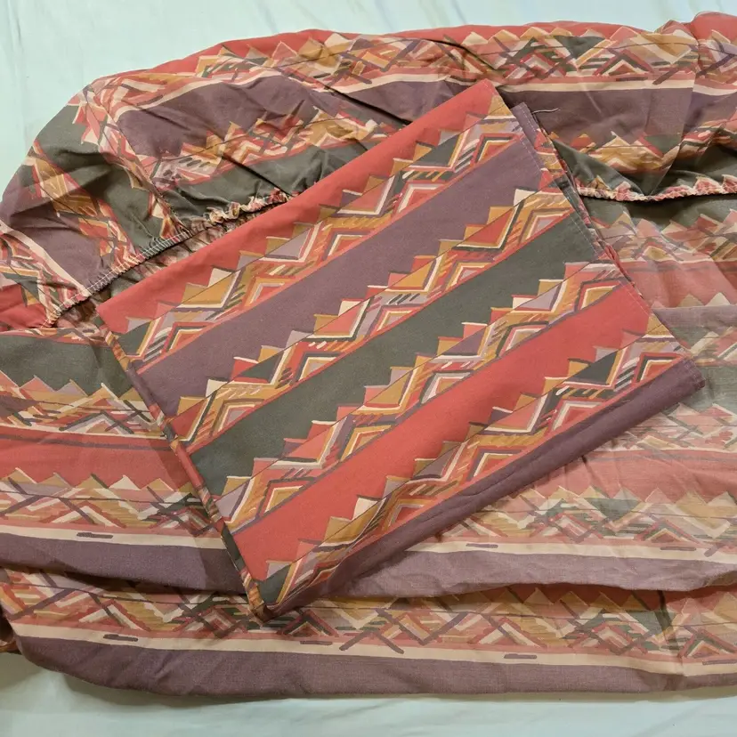 Brand: Unknown Pattern: Aztec Type: Sheet Set Size: Queen Color: Multicolor Style: Vintage Material: Blend Set Includes: Fitted Sheet, Flat Sheet