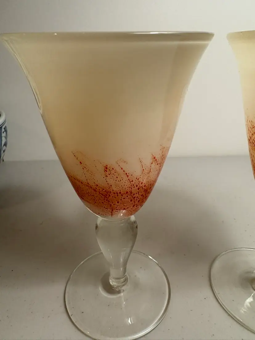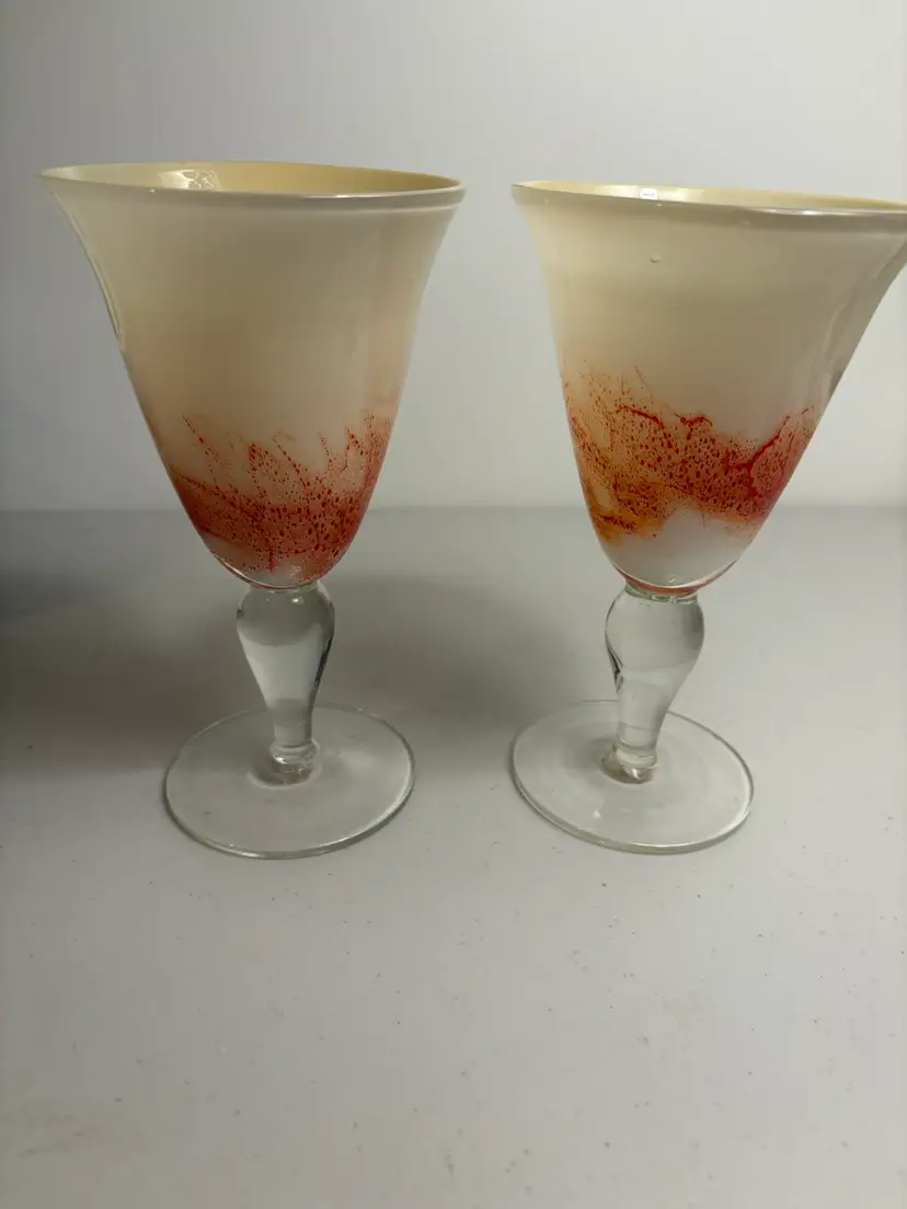 This product is a set of two handcrafted art glass goblets, made from hand-blown glass in a multicolor design. Each goblet is individually crafted, making them unique pieces for serving wine or water in a stylish and elegant manner. The art glass production style adds a touch of sophistication to any table setting, making them a perfect addition to any home bar or dining area. These handmade goblets are not only functional but also serve as beautiful decorative pieces that will surely impress guests.