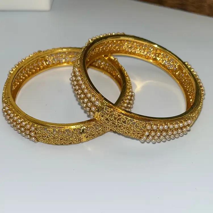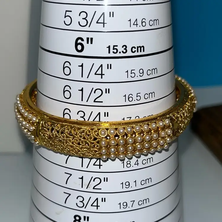 Two Gold Tone & Faux Pearl Bracelets 7”