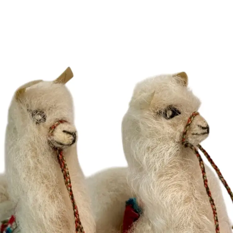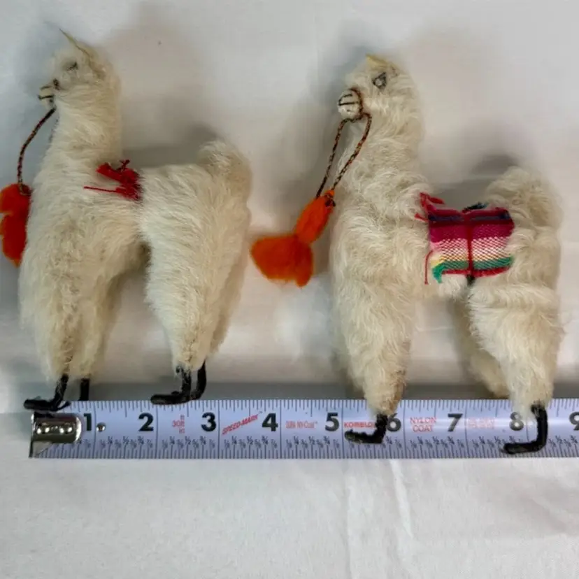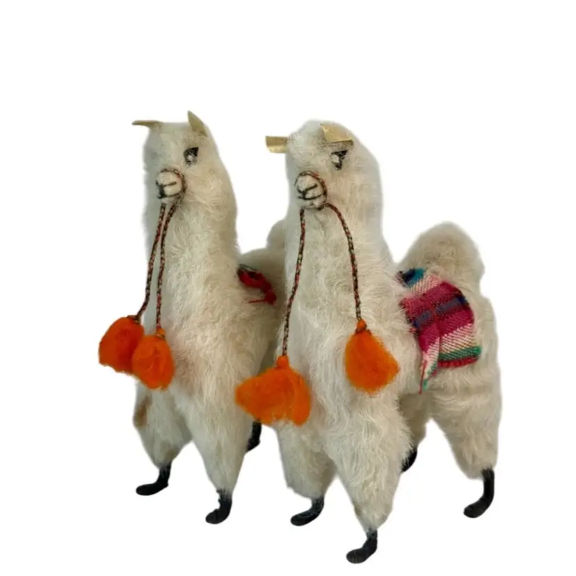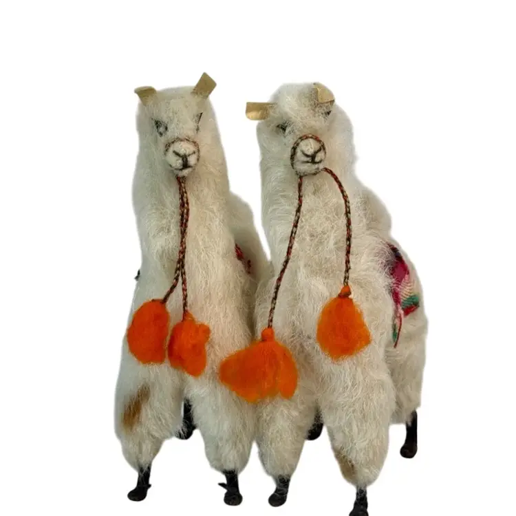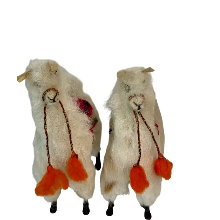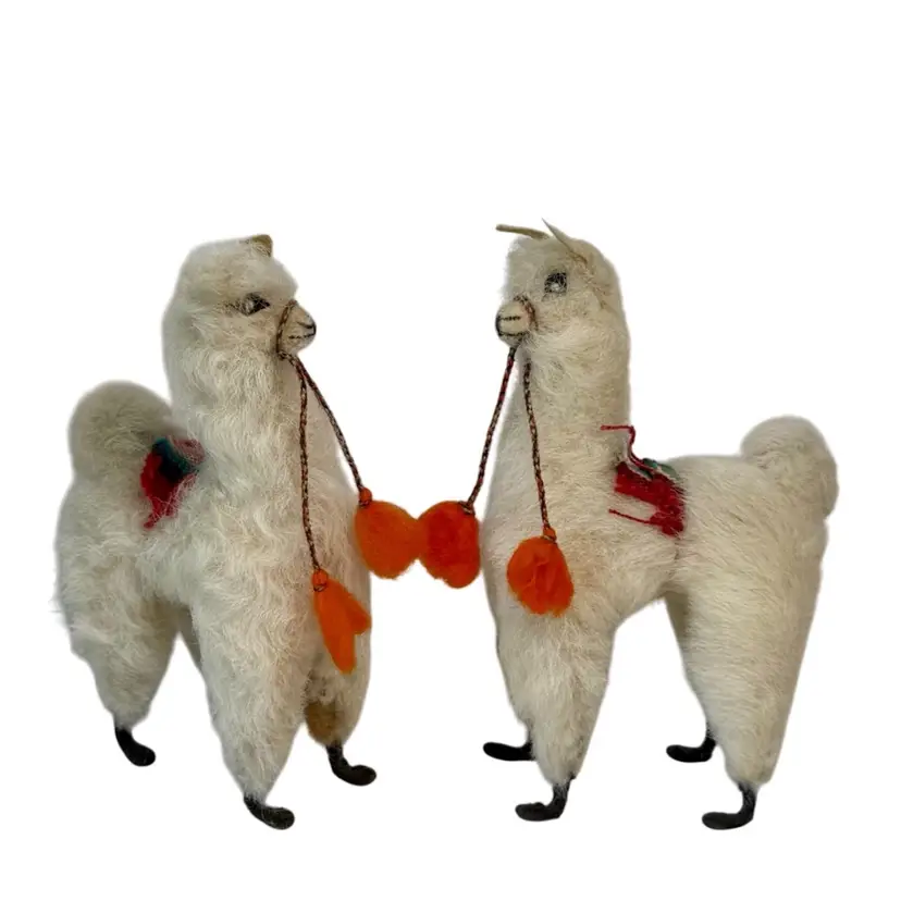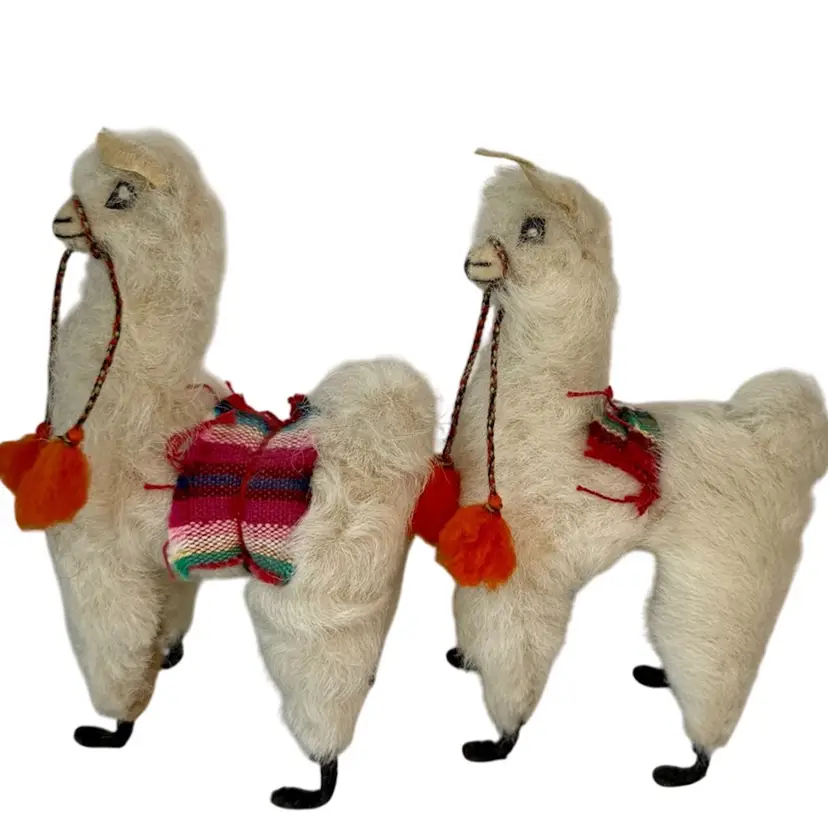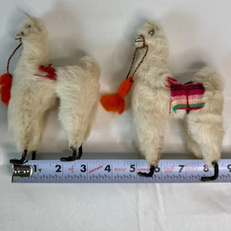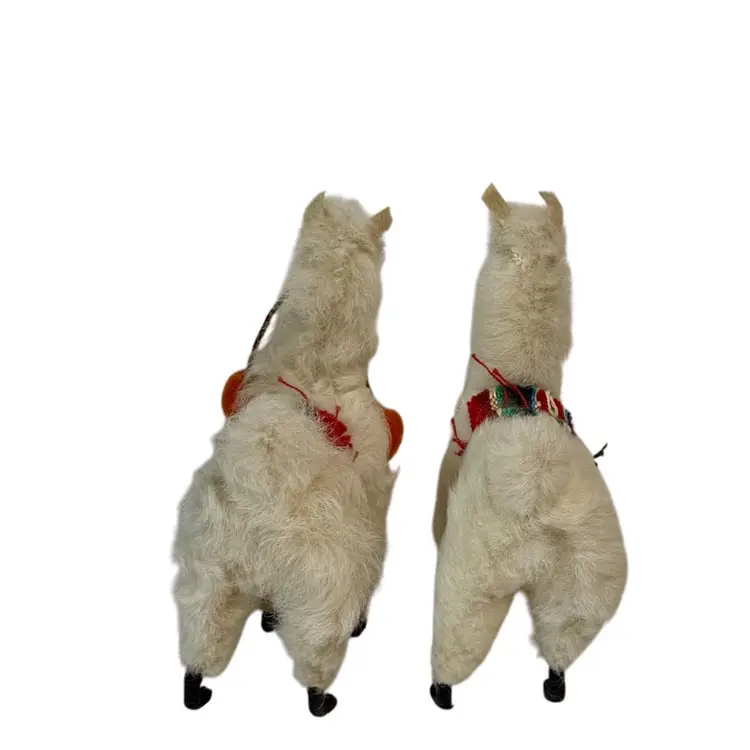 Set ofTwo Vintage plush Alpaca Llama Figurines.