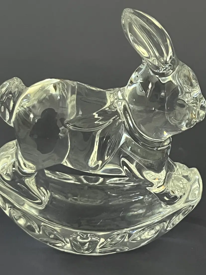 Vintage Jonal Full Lead 24% Crystal Rocking Bunny Rabbit. Measures about 3" high and 3" wide. These little guys are made in Germany. Perfect as paperweights or for decor.