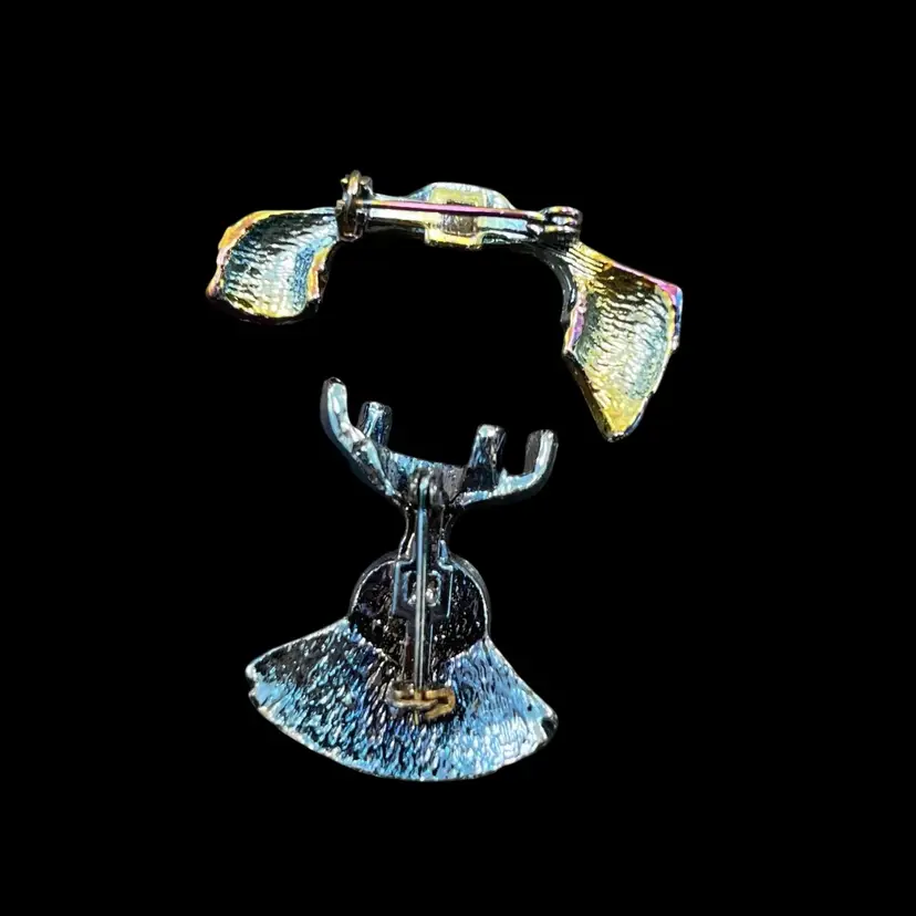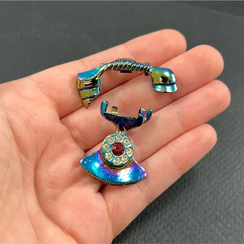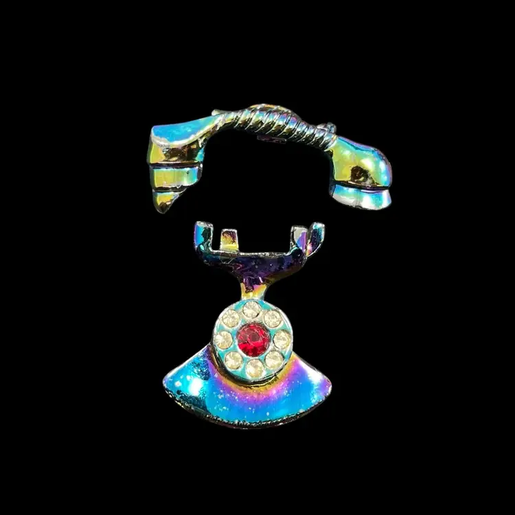 Base approximately 1.25” x 1”. Phone approximately 1.5” x 0.5”. Some wear to iridescent finish.