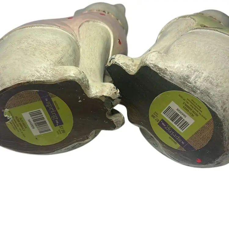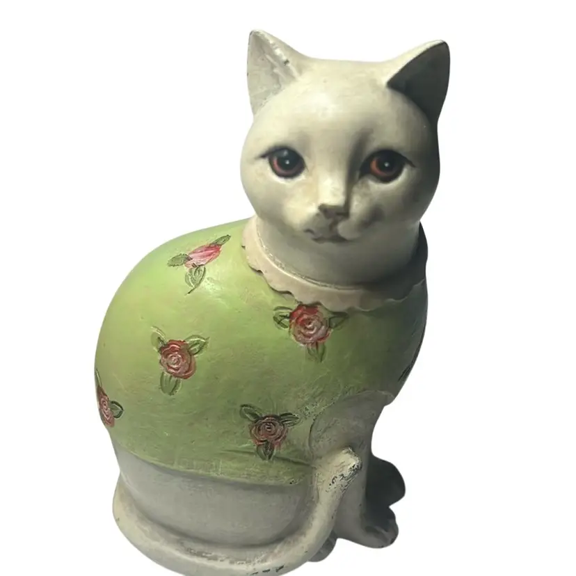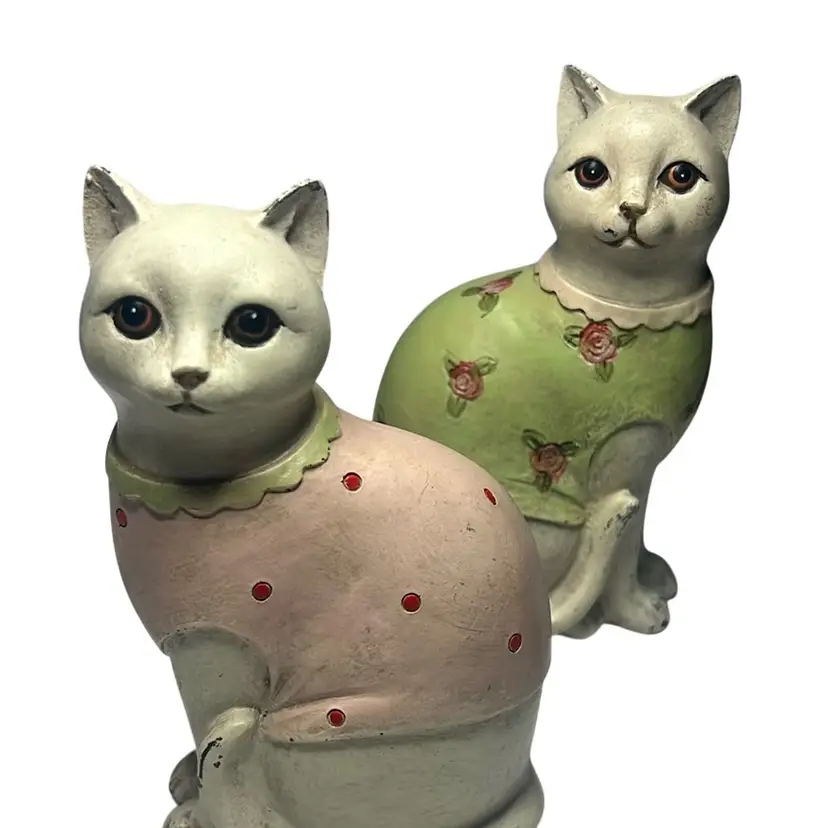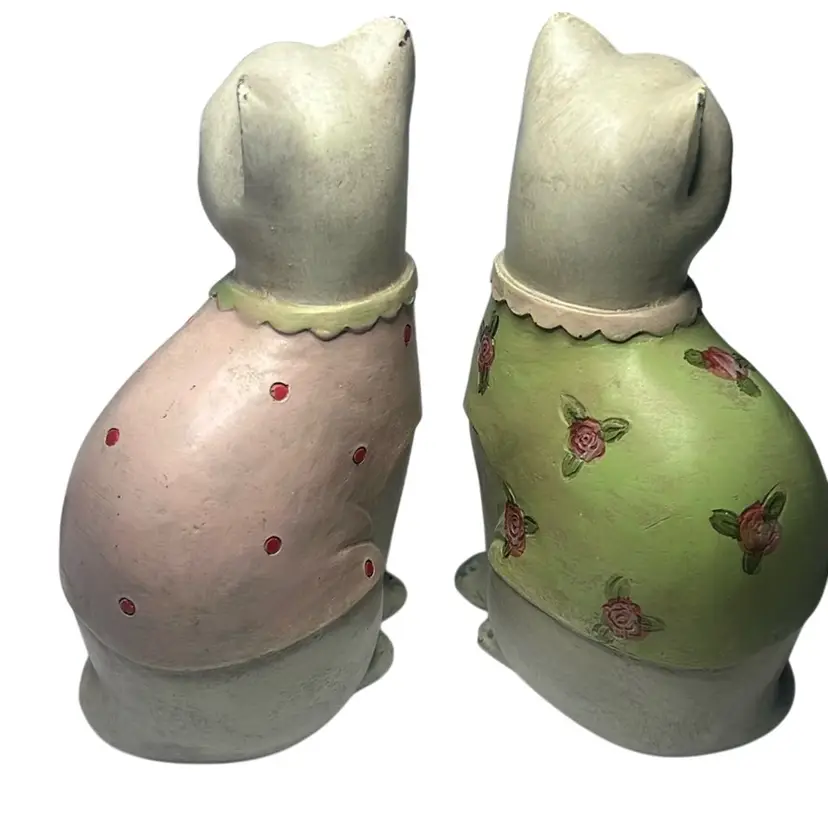 One cat has green sweater and the other a pink. Made to look vintage but are contemporary. They are an adorable pair, with no damage. Measures 6.5” tall & 3.5” wide