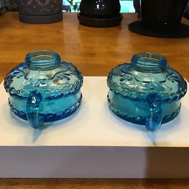Lamps are in great condition. There is one very tiny chips on the area where you screw the top on. Tops are missing due to excessive rust. I still have them if you want them. I can send a picture if interested. No globe for either. No other chips, cracks, or repairs. Size is in the pictures. See all pictures as they are an important part of the description. Made in Hong Kong.