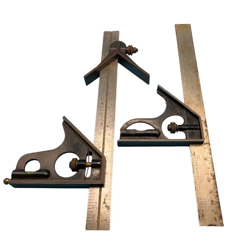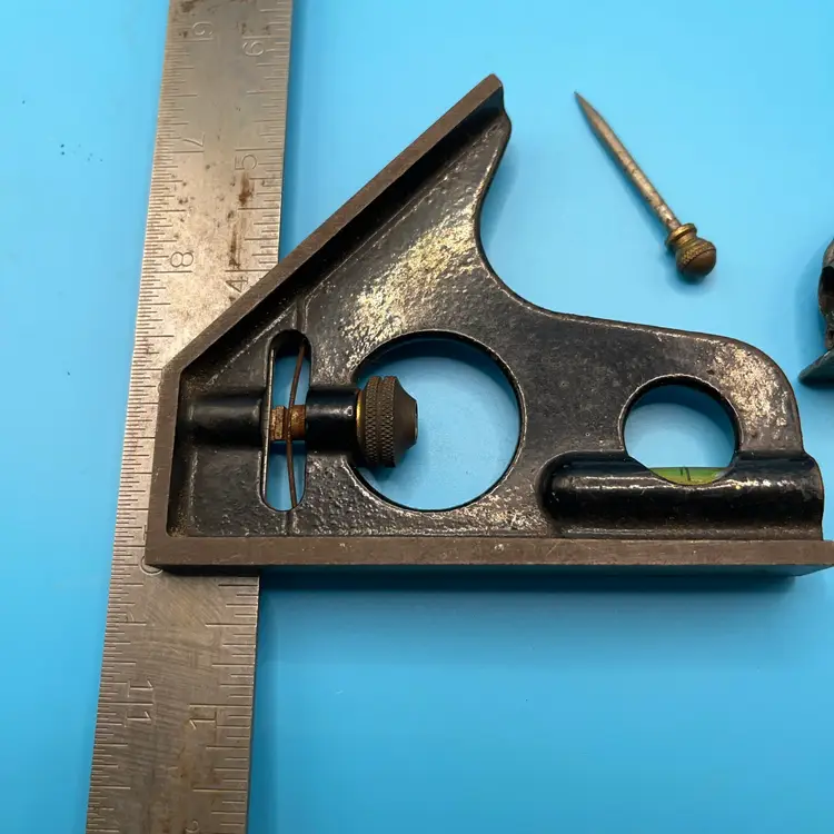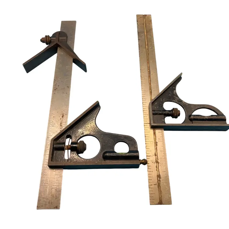 I have two squares. One is a combination, with scribe. One is marked made in USA. Both were from my father. Google lens identified the first as a Stanley number 122 and the second as a Lufkin. Since there is no manufacturer, I am taking Google’s word for it.