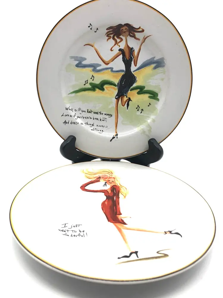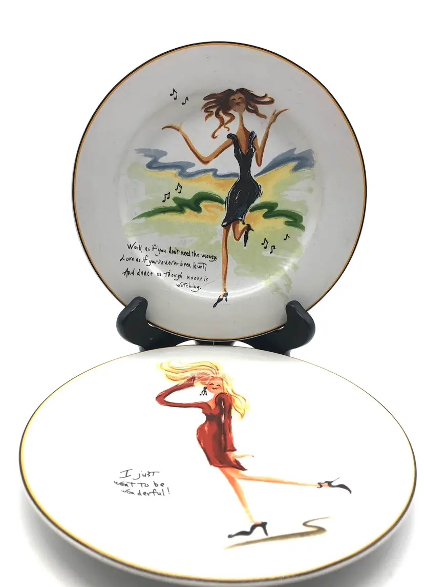 Add a touch of glamour and fun to your dining table with this vibrant set of two Sakura Glamour Girls plates. Featuring playful sayings and eye-catching designs, these plates are perfect for serving up your favorite dishes.