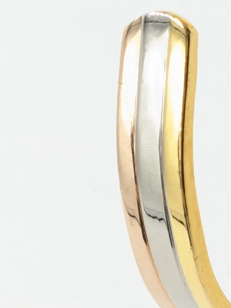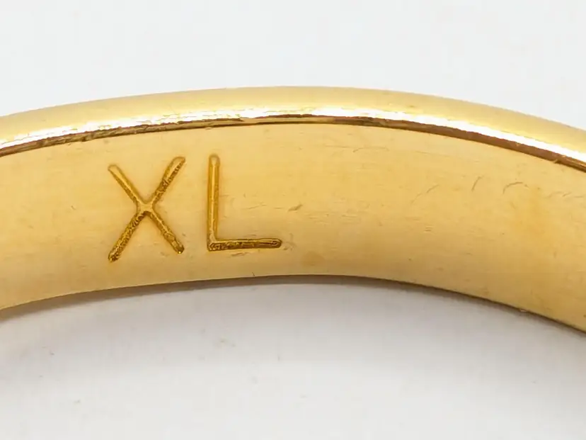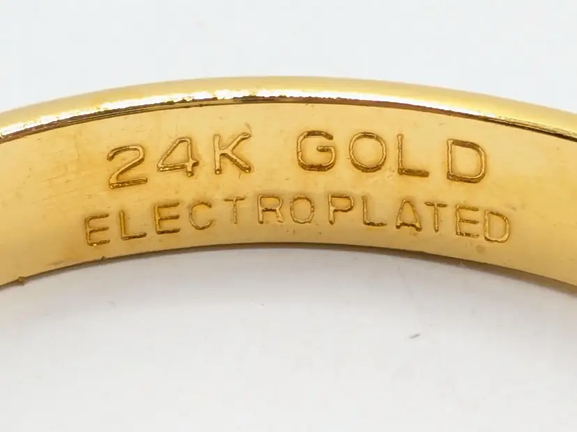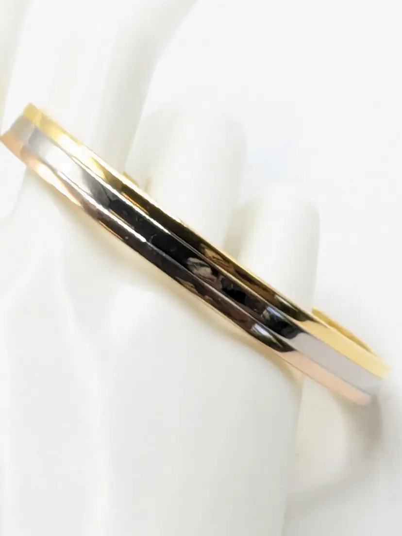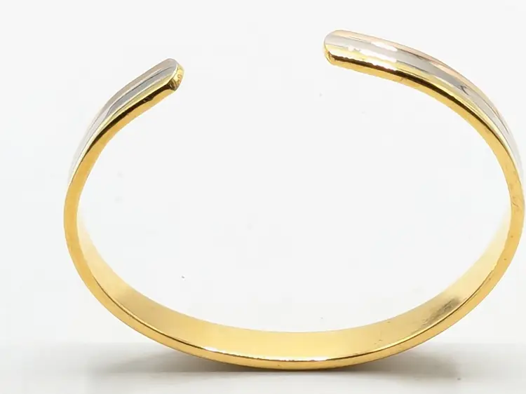 Good condition. This stylish cuff bracelet features a two-tone design with gold and silver bands. Marked 24K Gold Electroplated and XL. Measures 7 1/4". (EN1)