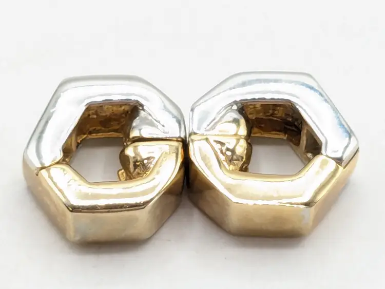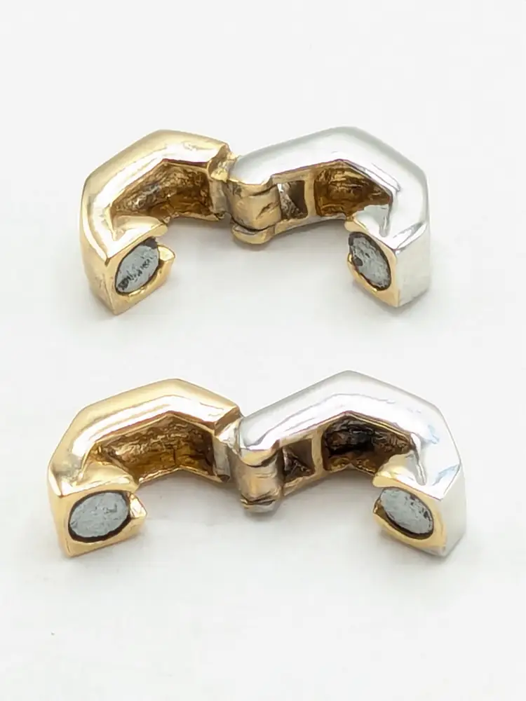 Good condition. Silver and gold tone are bright and shiny with no color loss. Magnetic closure. Measures 3/4" in length and 1/4" wide. EN2