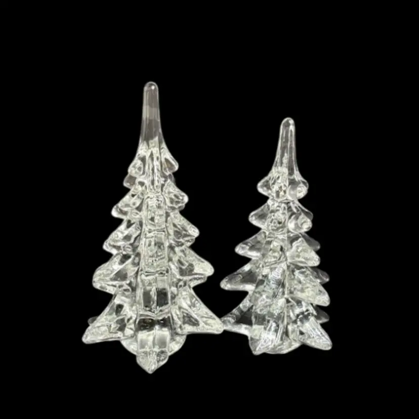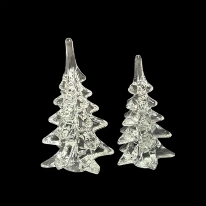 Set of two vintage clear glass Christmas trees. Glow with a 365 UV light.