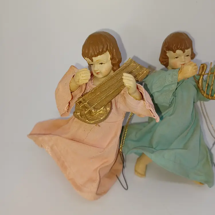 Two Vintage Clothtique Angel Cherubs Blue & pink 5 in Kurt Adler One has a gold made in Taiwan sticker on the back In good vintage condition with no obvious flaws please see all pictures as they are the best description all items from a smoke-free home with pets experienced fragile shipper
