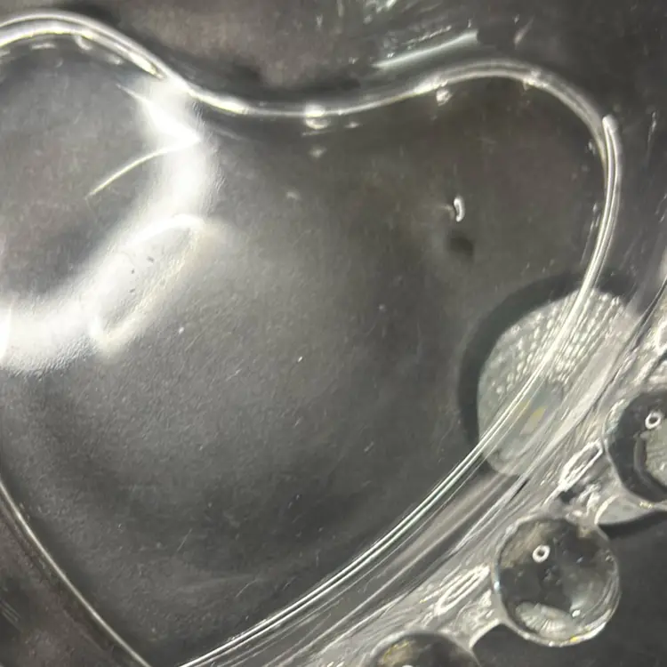 No chips or cracks. Both hearts have an imperfection. Large heart 4-1/2” h x 5” w