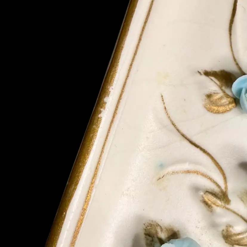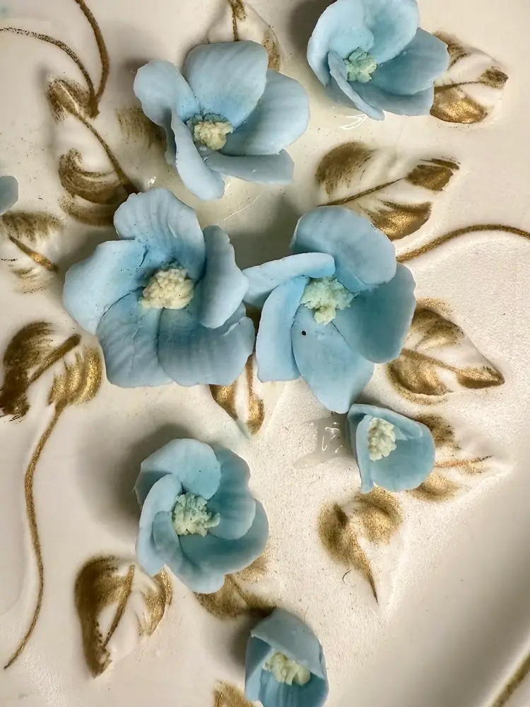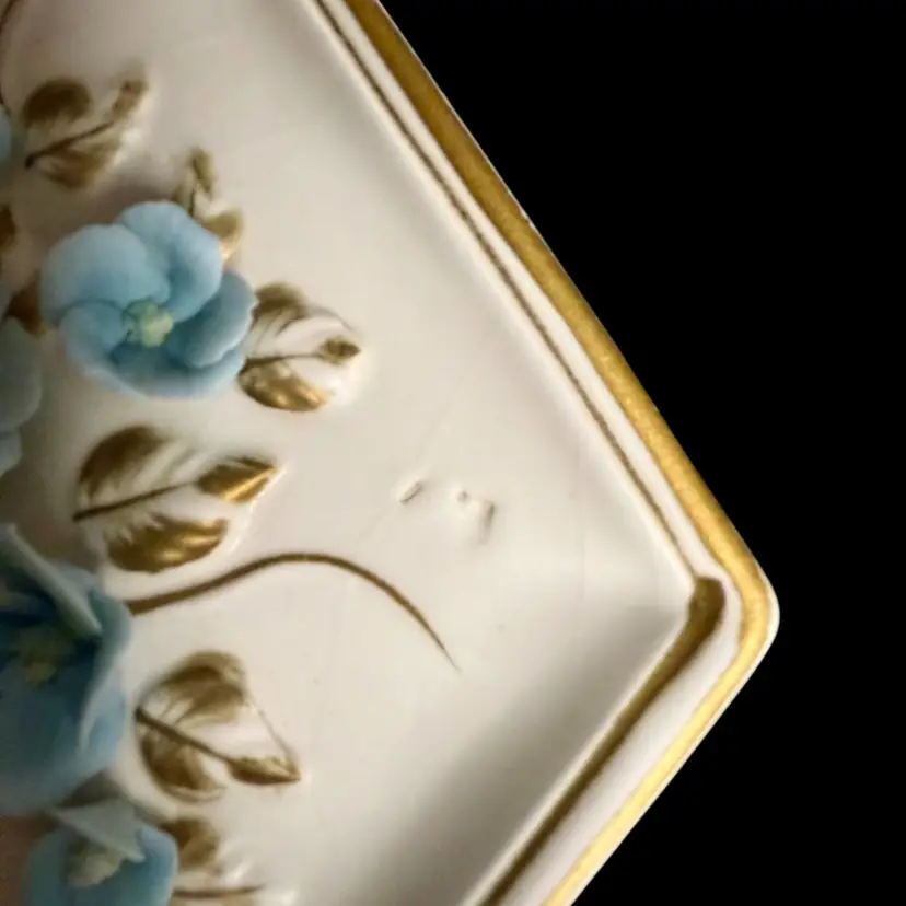 Condition: Manufacturing flaw on the blue floral one, minor gold gild in areas. No other condition issues noted.