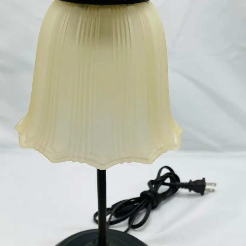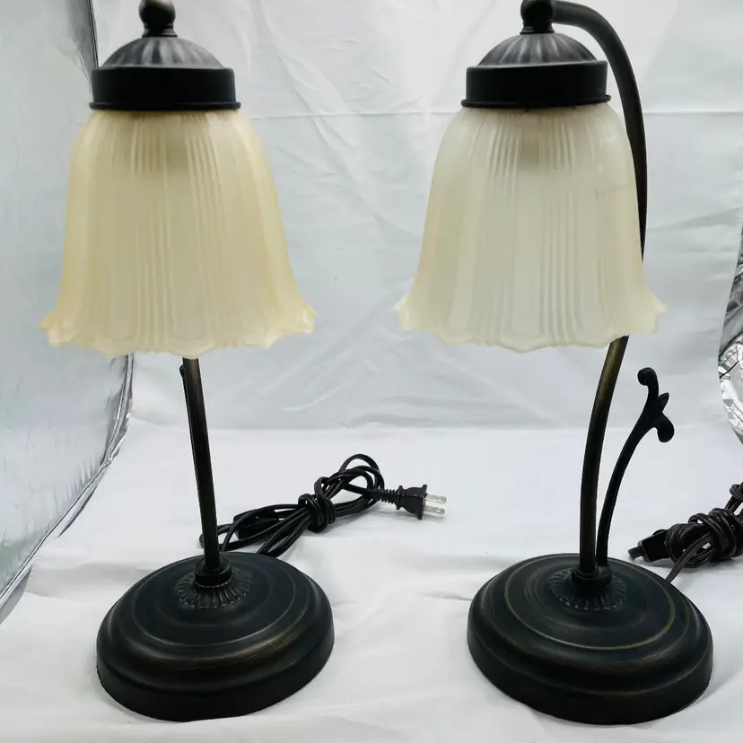 Two Vintage Mid Century Metal Desk Lamps with Frosted Shades