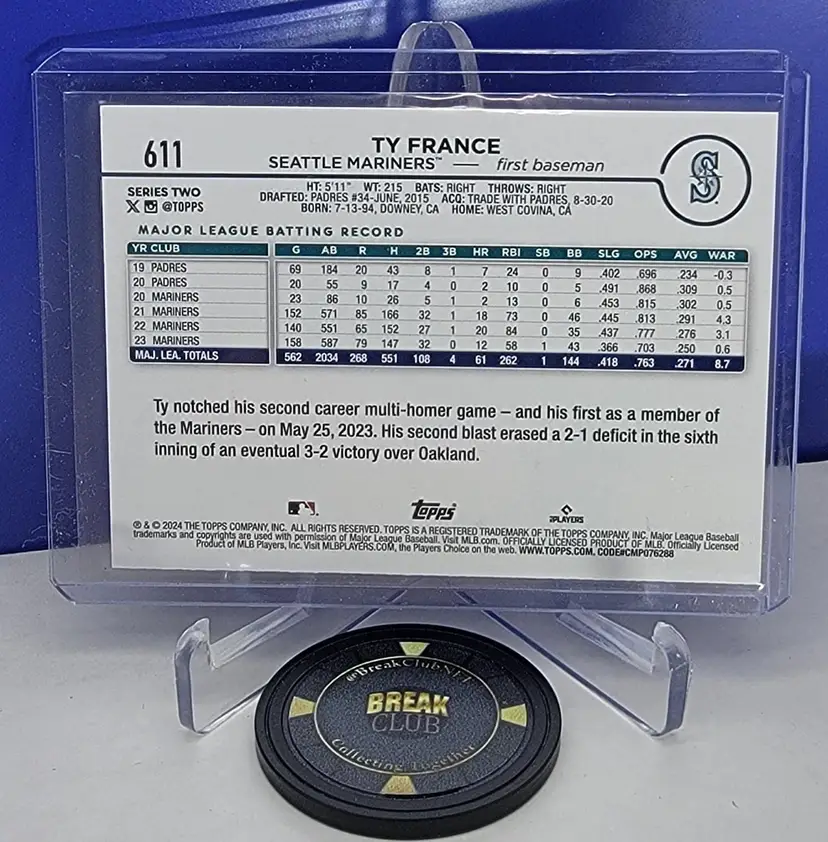 Ty France 2024 Topps Series 2 Team Color Variation No. 611 Seattle Mariners
