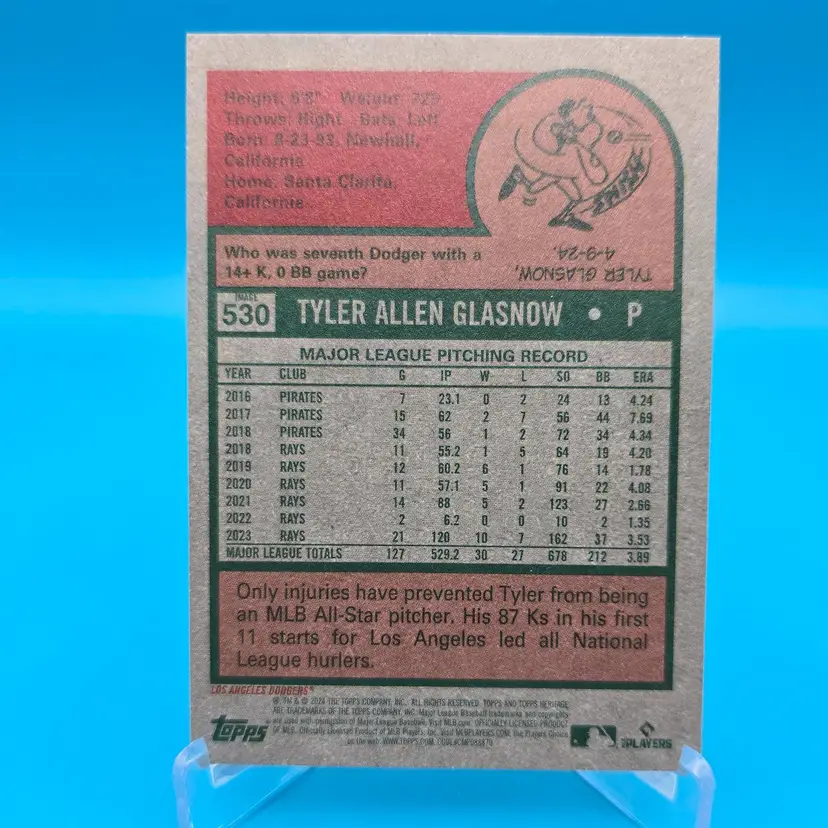 Glasnow 2024 Topps Heritage High Number Image Variation. NM or better condition. Shipped PWE.