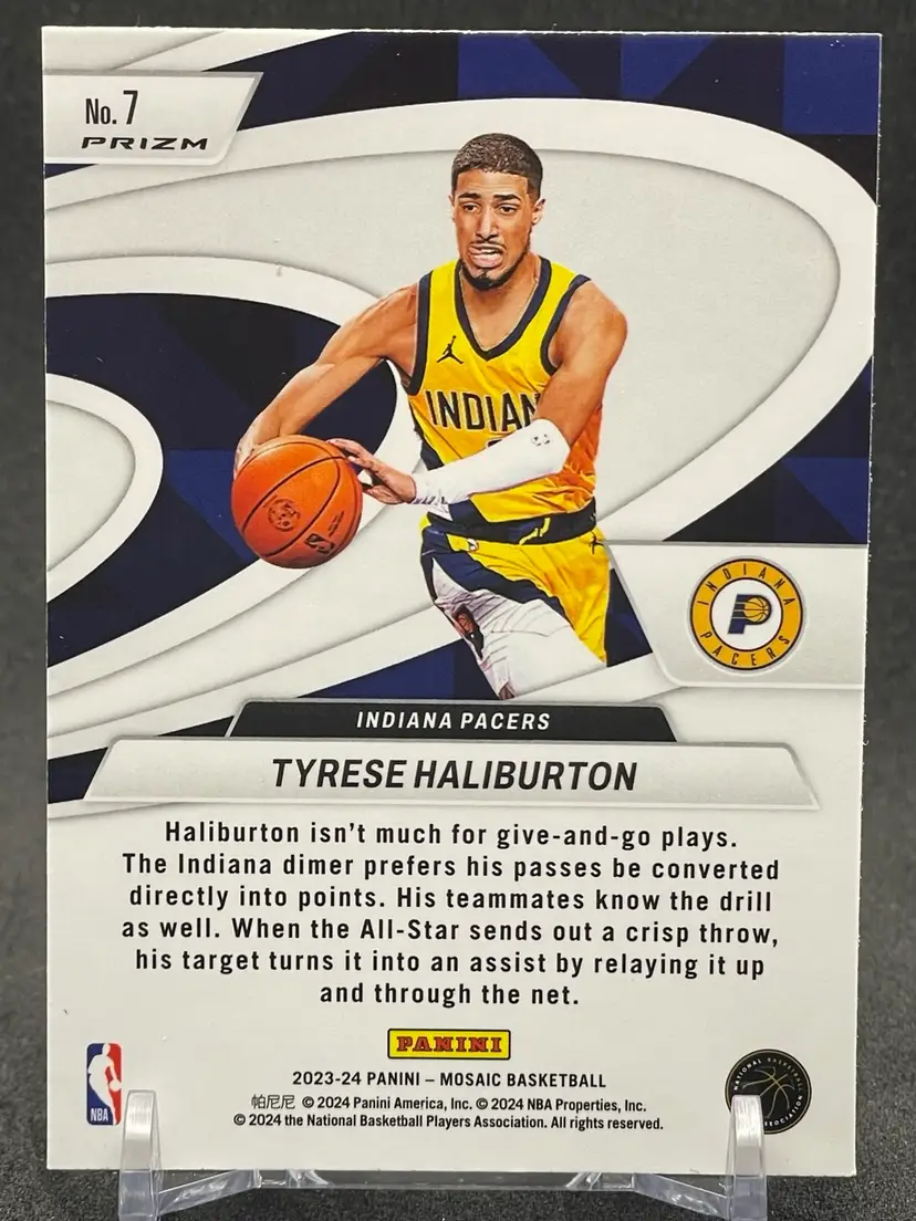 Item Description: Tyrese Haliburton 2023-24 Mosaic Give and Go #7 Green Mosaic Prizm