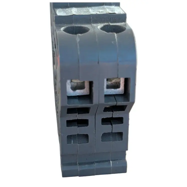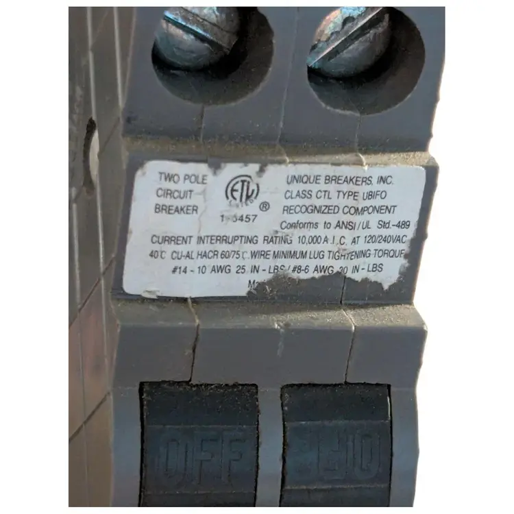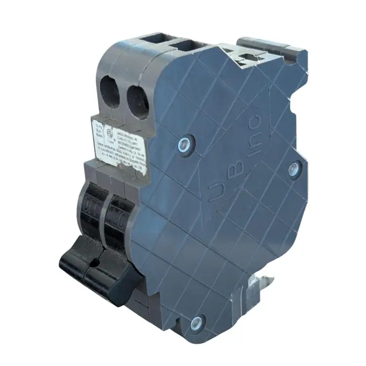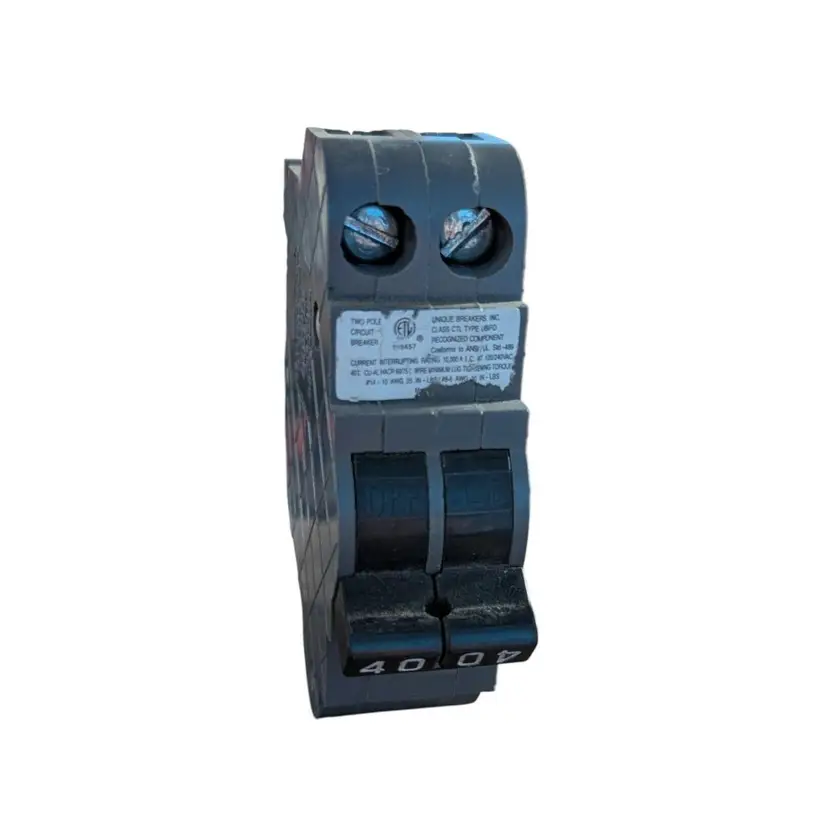 The UBIF0240N Connecticut Electric circuit breaker is a 2-pole, 40A unit designed for snap-in mounting in electrical systems operating at 120-240V. It features a thermal interruption type and an on/off operation method with instantaneous break time. The breaker is suitable for both interior and exterior applications, with a gray ABS/plastic construction and screw terminal electrical connection. This unit is specifically designed for branch circuit and electrical wiring applications, providing reliable protection and control over the flow of AC current in the system.