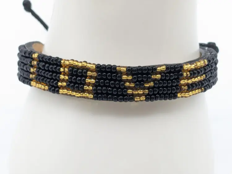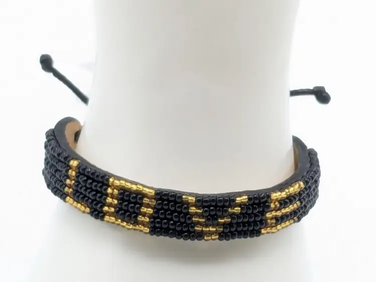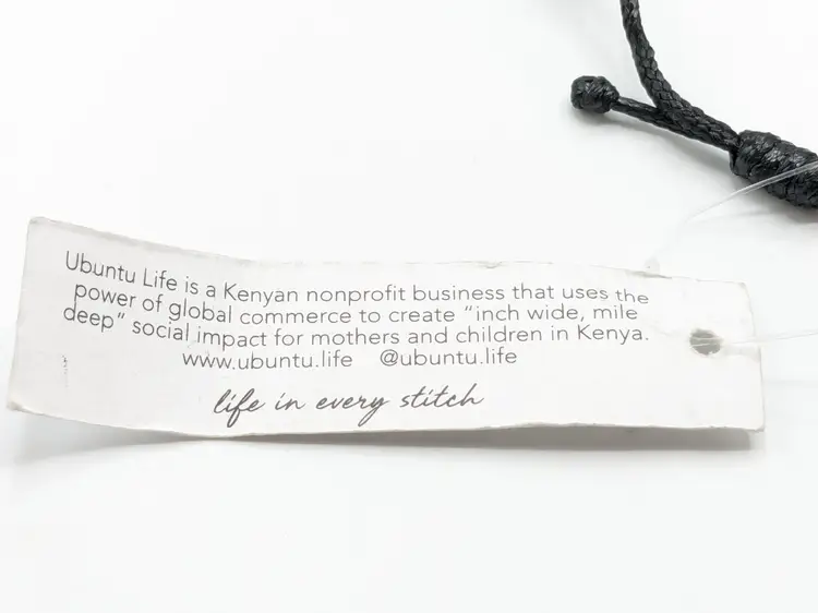 Good condition. New with tag. Slide Closure. Handmade in Kenya.