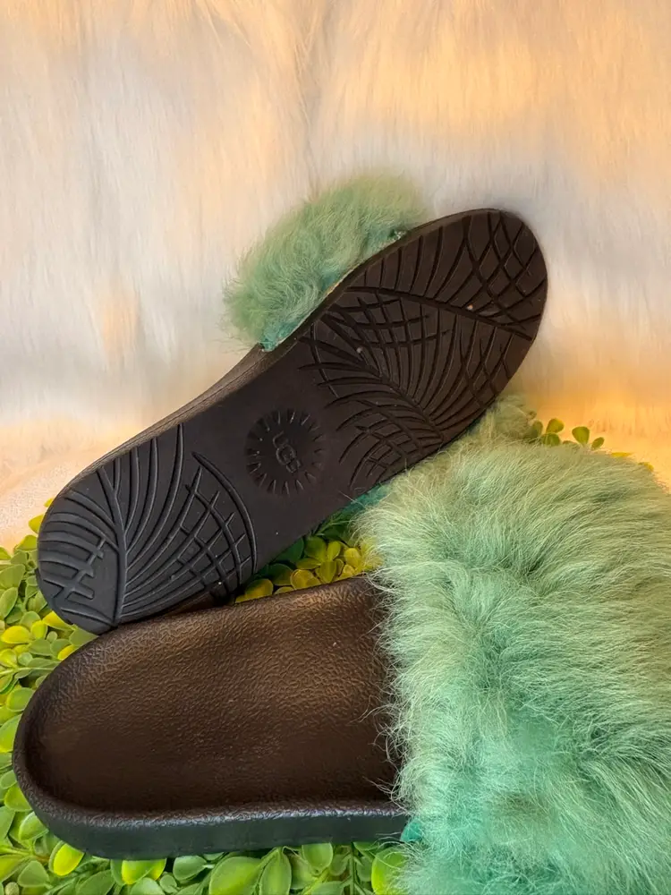UGG NWOT Royale Green Sage Fur Slide Slippers, Size 9 - NEVER WORN