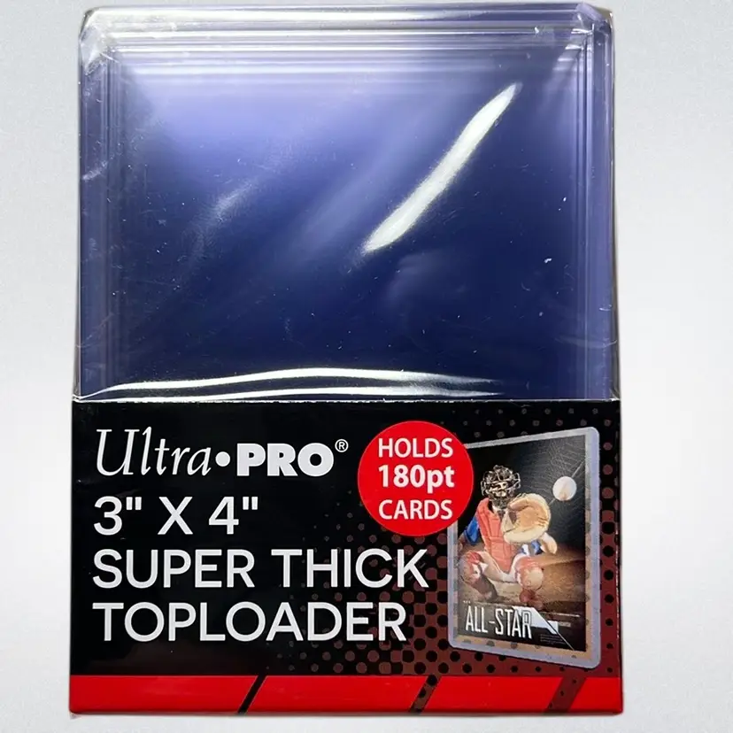 LIMIT 4 Please! Ultra Pro 180pt Thick Toploaders 10 pc pack. Please contact to discuss shipping and price for larger quantities. FIRST TIME CUSTOMERS: GRAB 2 AND USE CODE MBB FOR $5 OFF! (first timers only also get free shipping, hobby hack!) This is a stacked shipping item and will not ship until the “shipping request” is purchased for $6 or you have an item purchased that includes free shipping to combine it with. There is no deadline to purchase shipping and your stack is saved indefinitely.