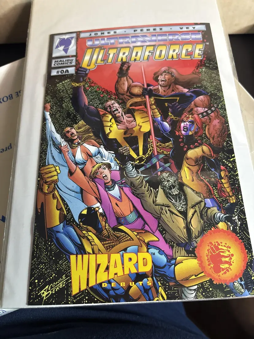 Ultraforce #0A – Wizard Debuts Variant (1994) This special Wizard Magazine promotional variant of Ultraforce #0A helped launch Malibu Comics' flagship superhero team within the Ultraverse. Featuring a dynamic cover by legendary artist George Pérez, this Wizard-exclusive preview showcases the earliest appearance of Ultraforce with characters like Hardcase, Prime, Prototype, Ghoul, and Topaz.