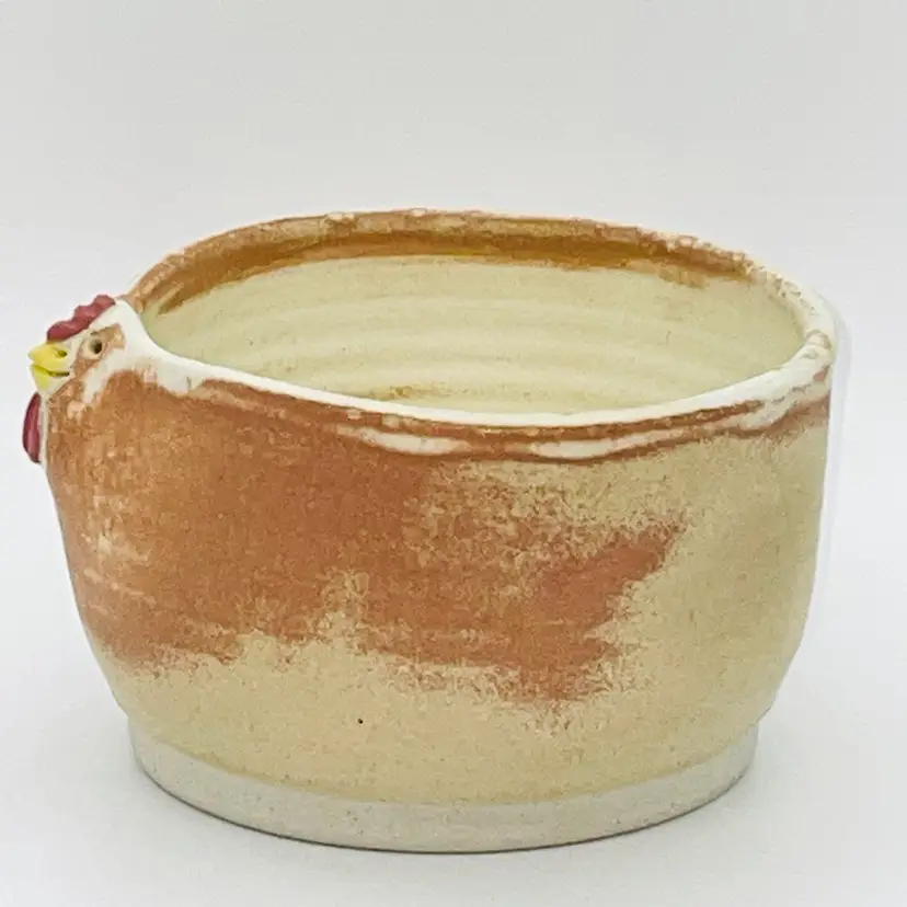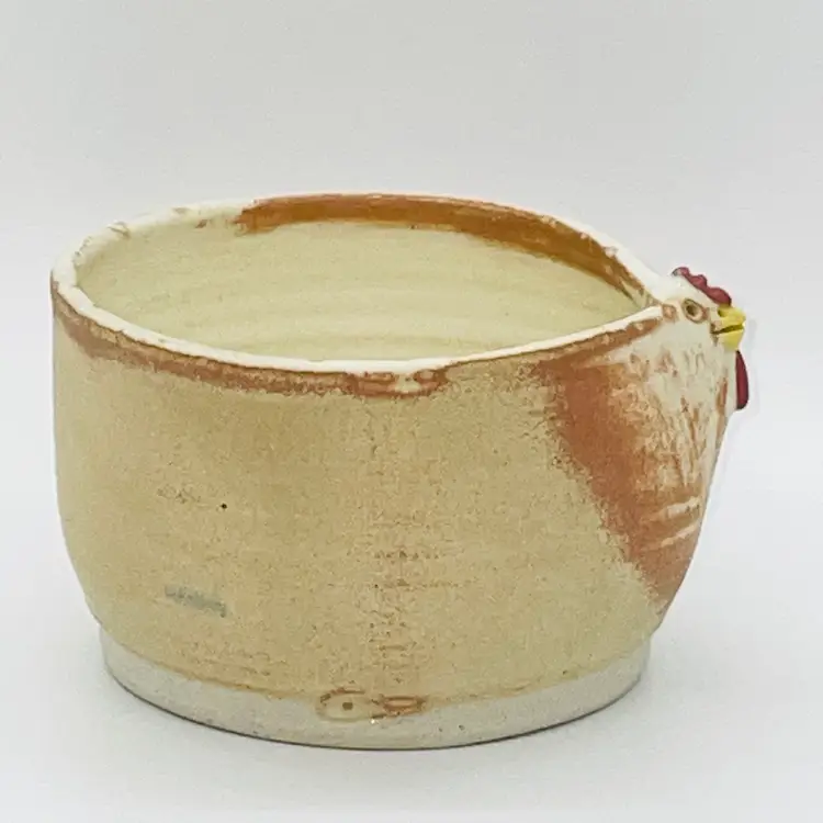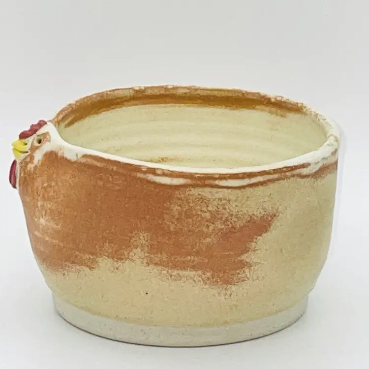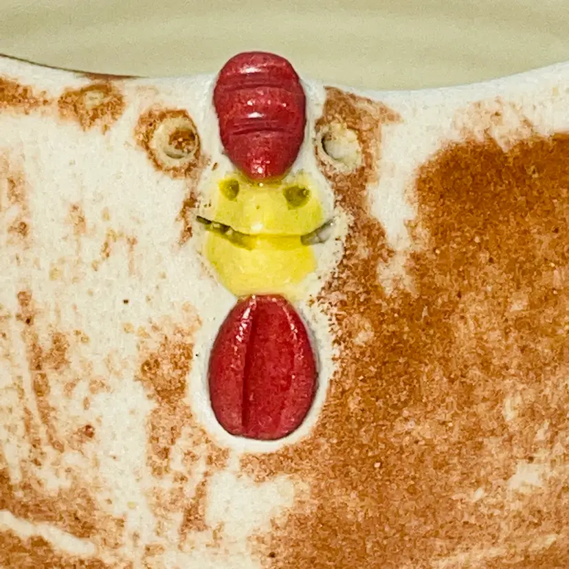 This is a Unbranded Chicken Rooster Folk Art Pottery Farmhouse Decorative Trinket Bowl